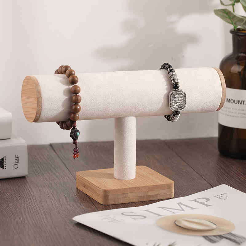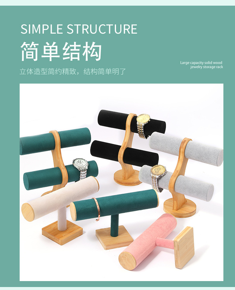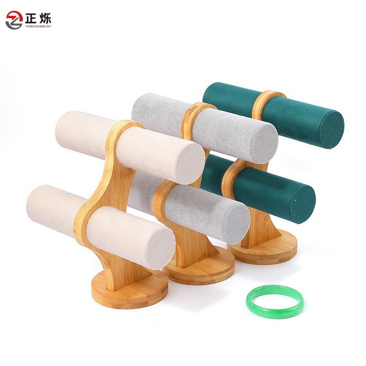 Color: Bamboo wood arc single layer bracelet stand rice velvet