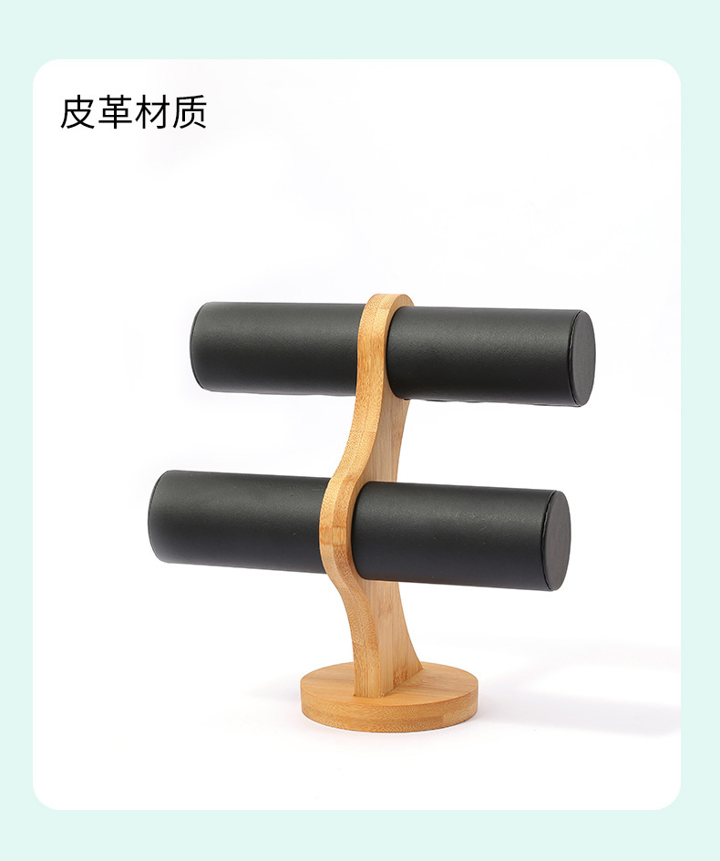 Color: Bamboo wood cylinder single layer bracelet stand black leather