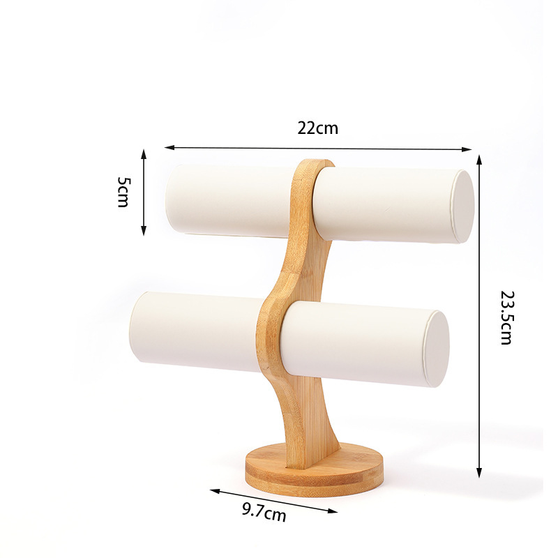 Bamboo-wood Arc Double-layer Bracelet Rack White Leather