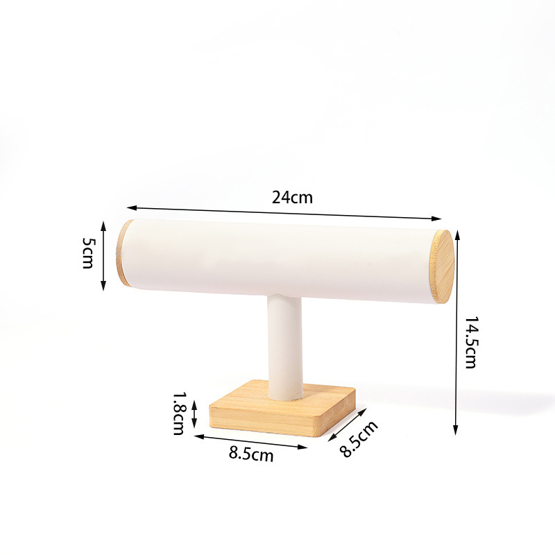 Bamboo-wood Cylinder Single-layer Bracelet Rack White Leather