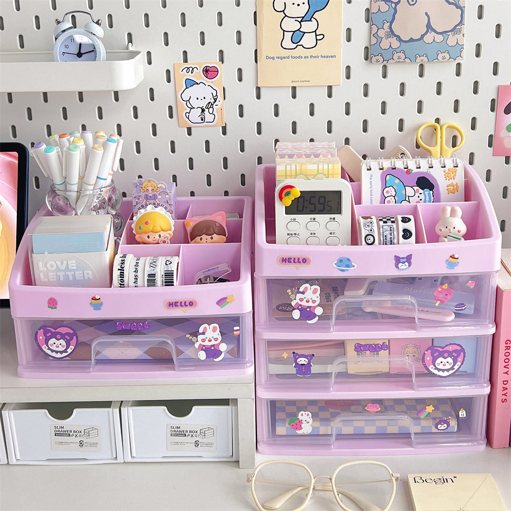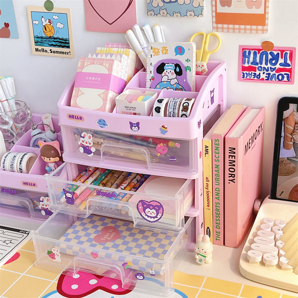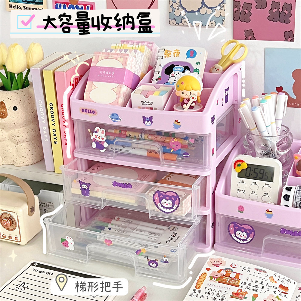 Student Dormitory Drawer Box Large Capacity Handbook Stationery Girls Desk Hair Accessories Transparent Organizer Box Storage