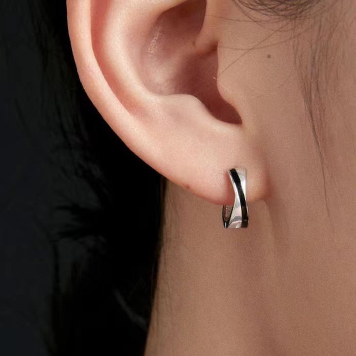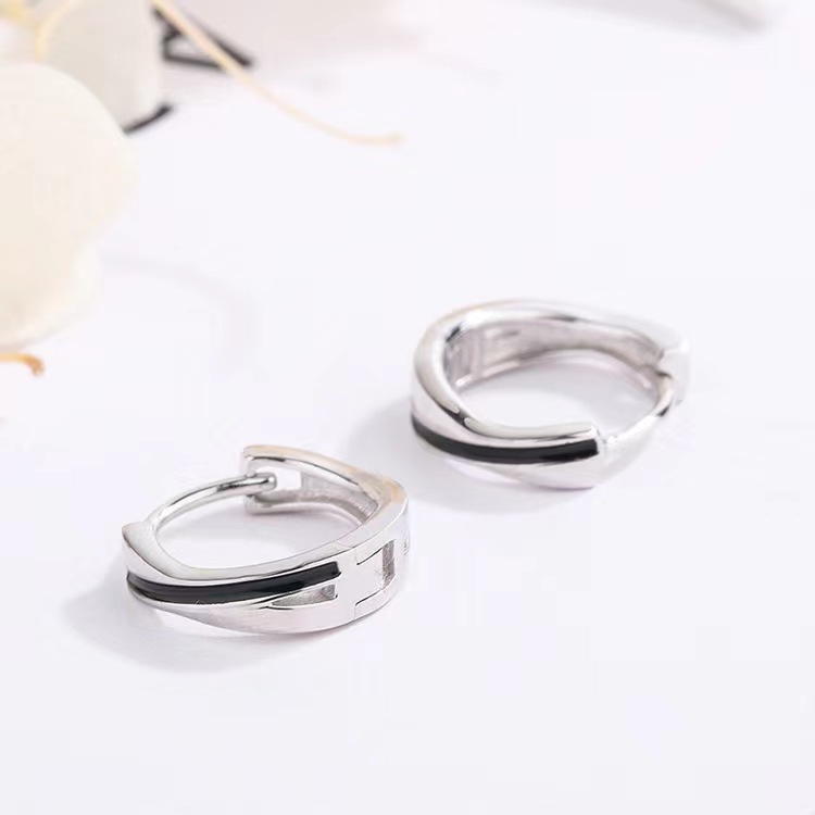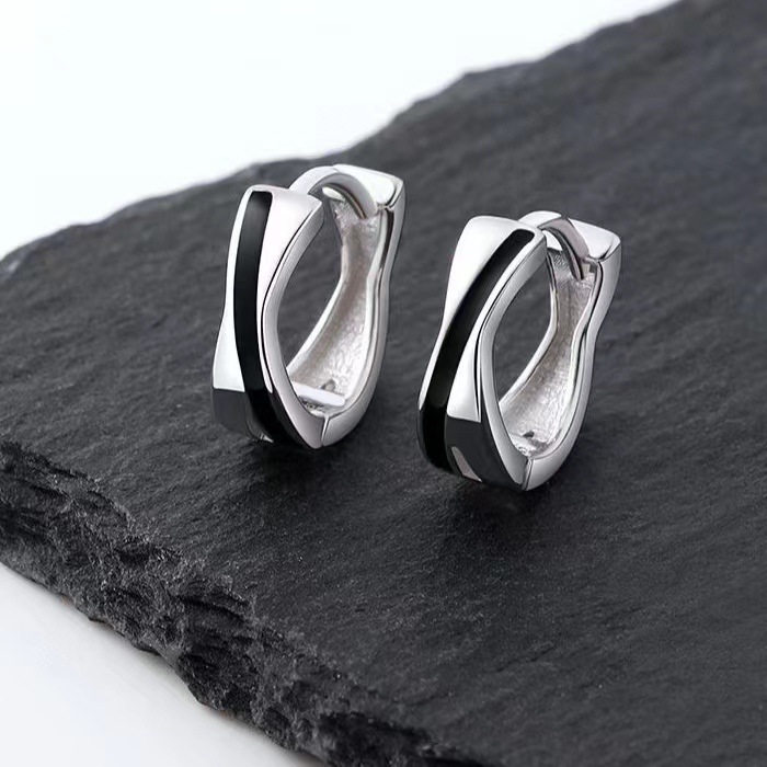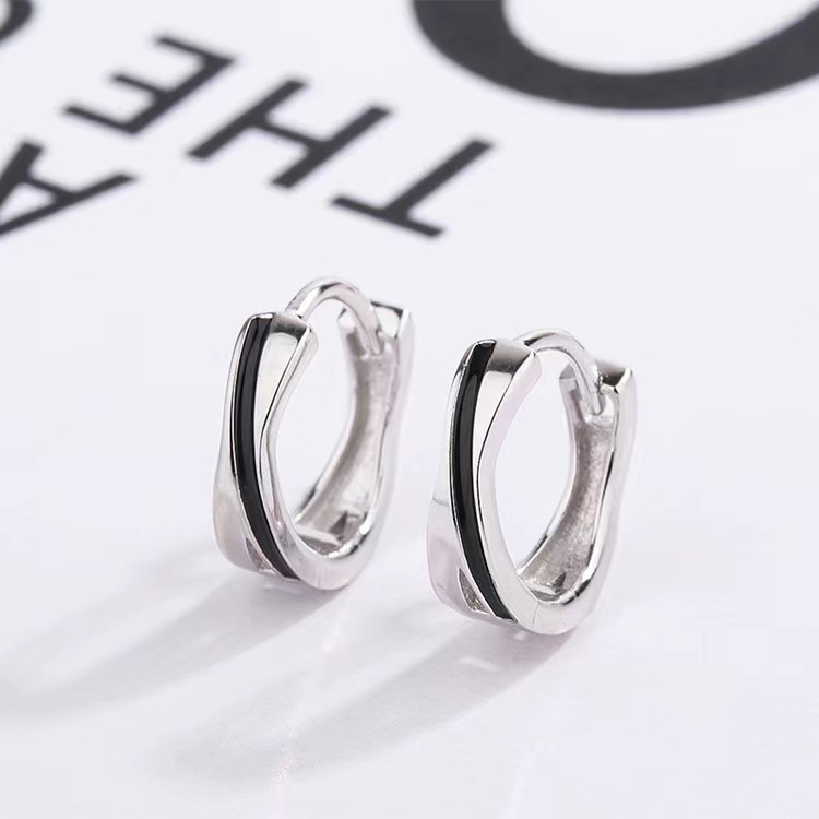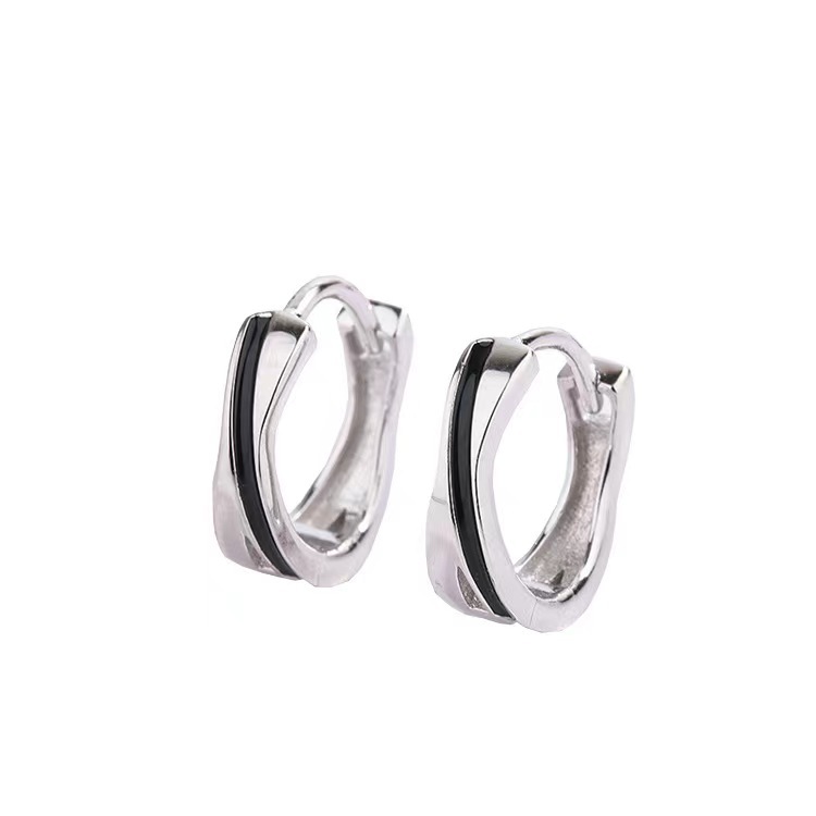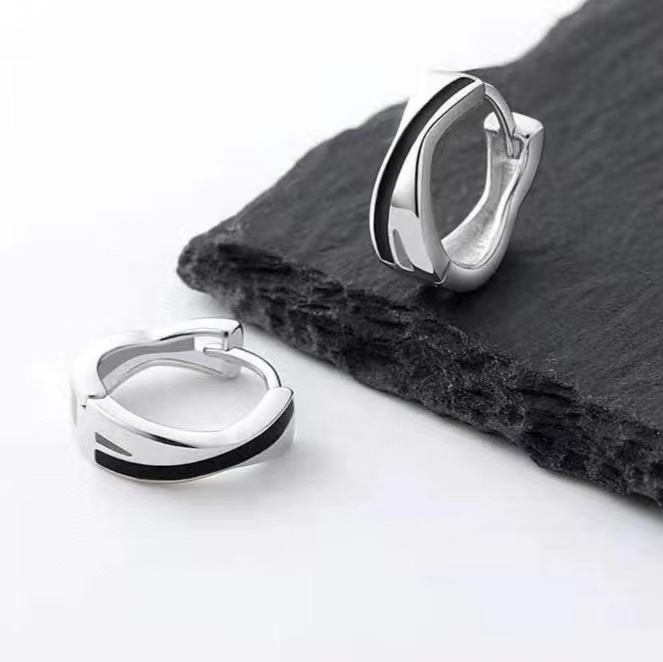 Black Glaze Hip-Hop Ear Men's Temperament Personalized Design Simple Exquisite Trendy Ring Ear Buckle Ring Earrings