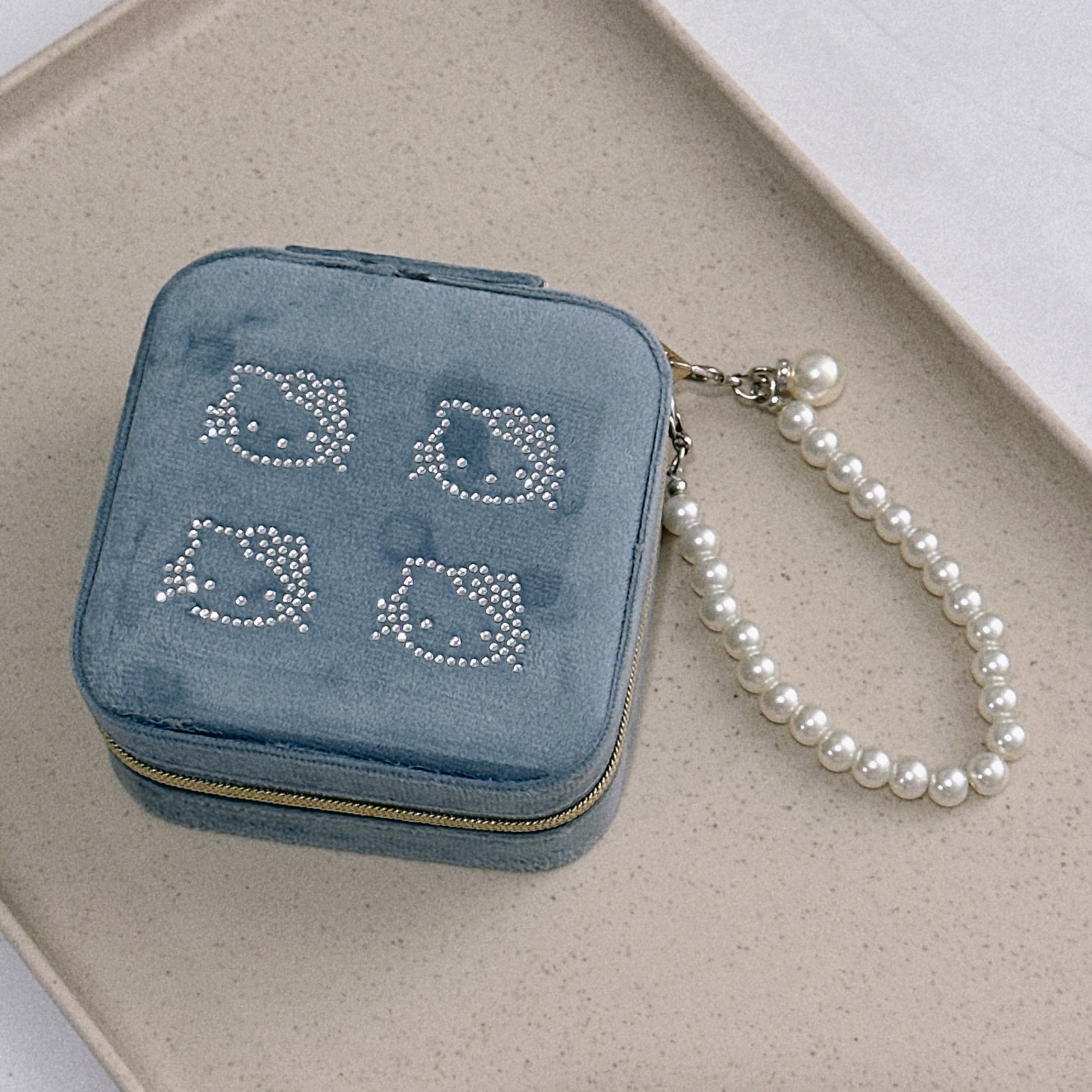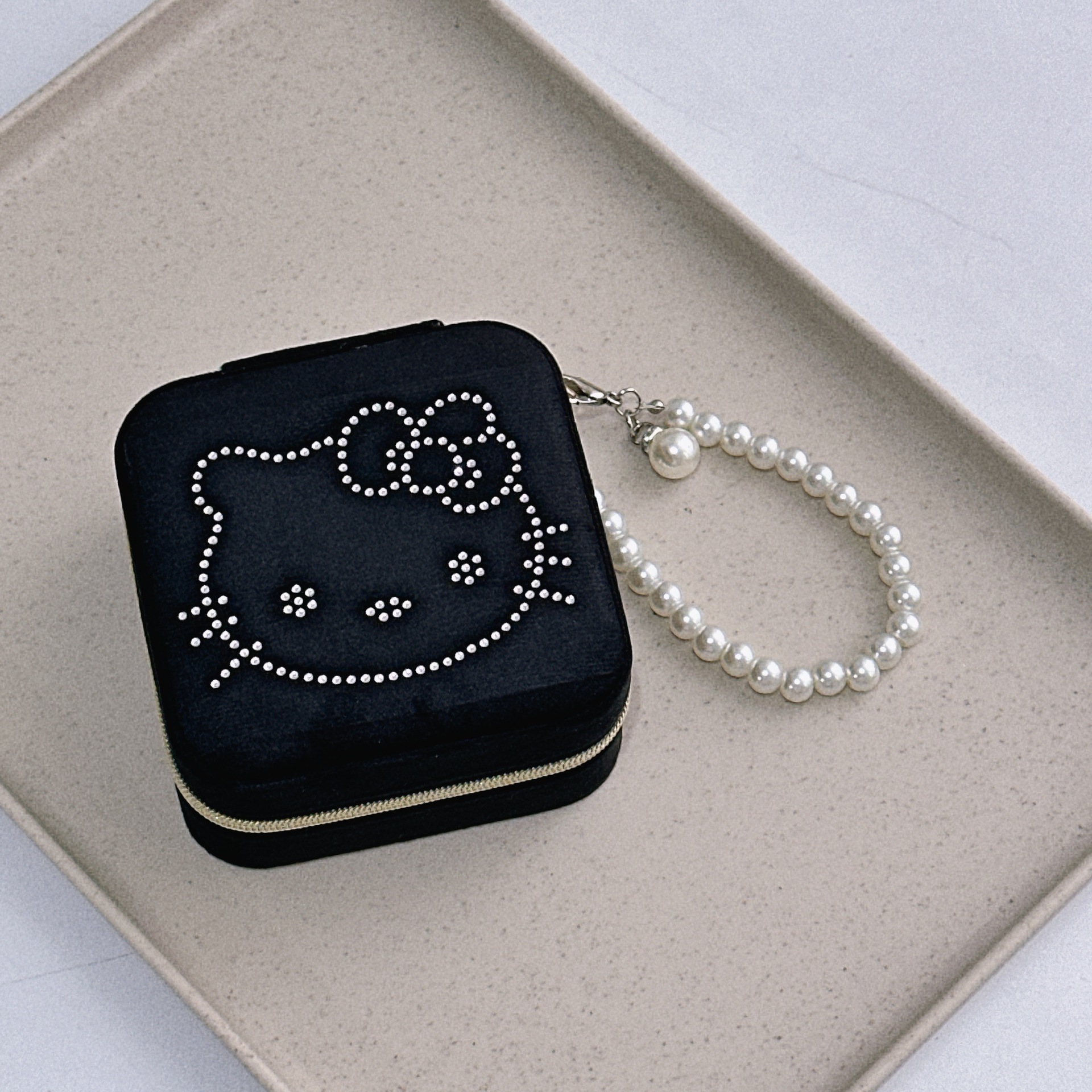 Color: Leopard print multi-head rhinestone kt velvet jewelry box + pearl chain