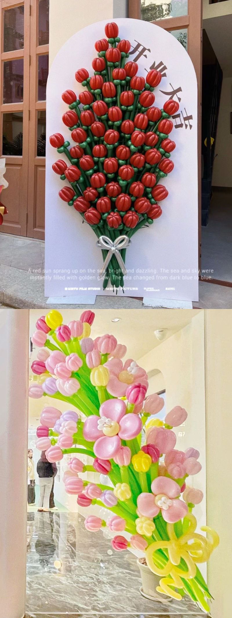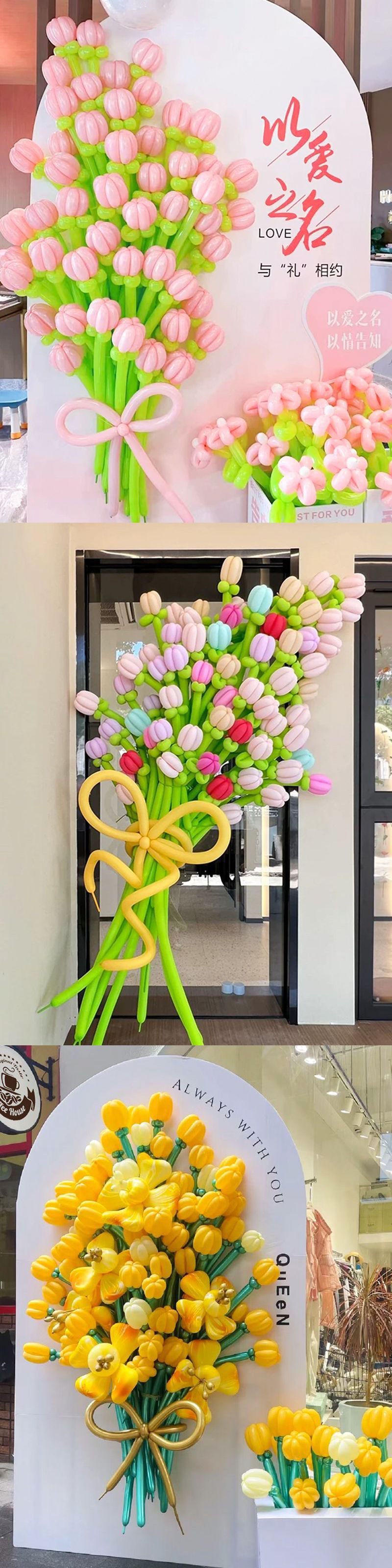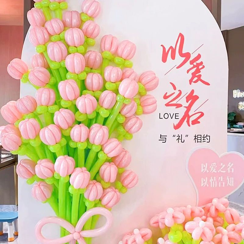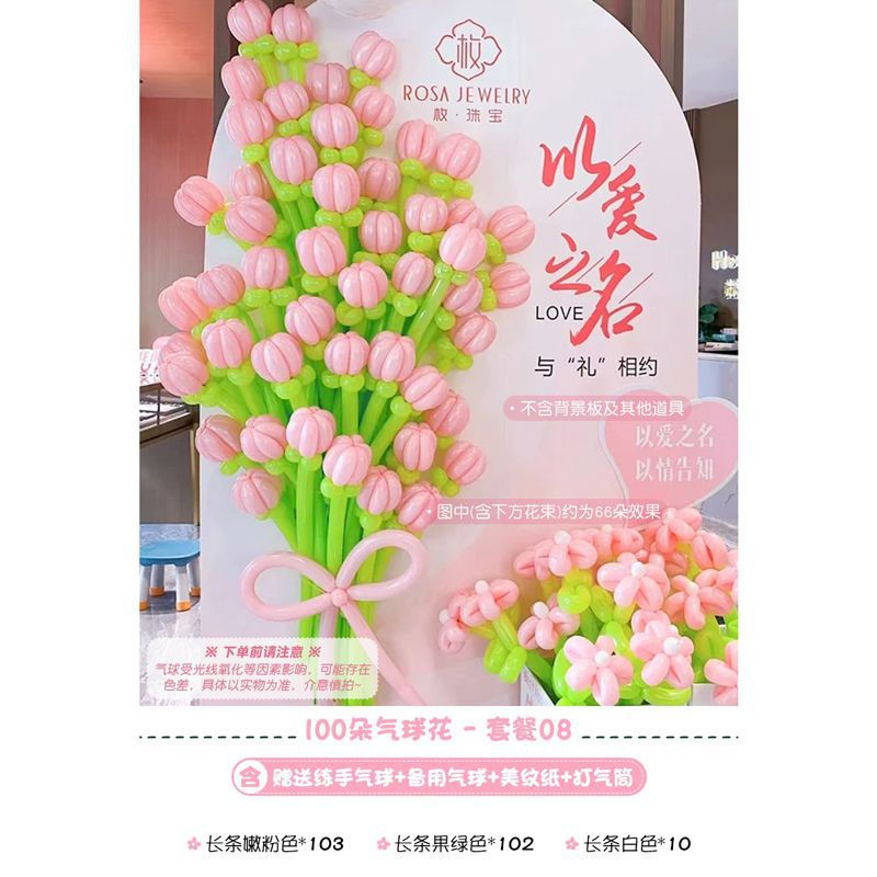 Goddess Festival long balloon bouquet background wall decoration shopping mall jewelry store March 8th Women's Day atmosphere scene layout