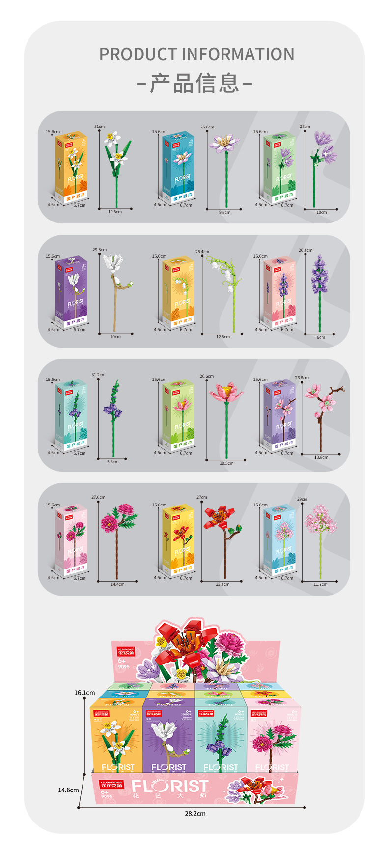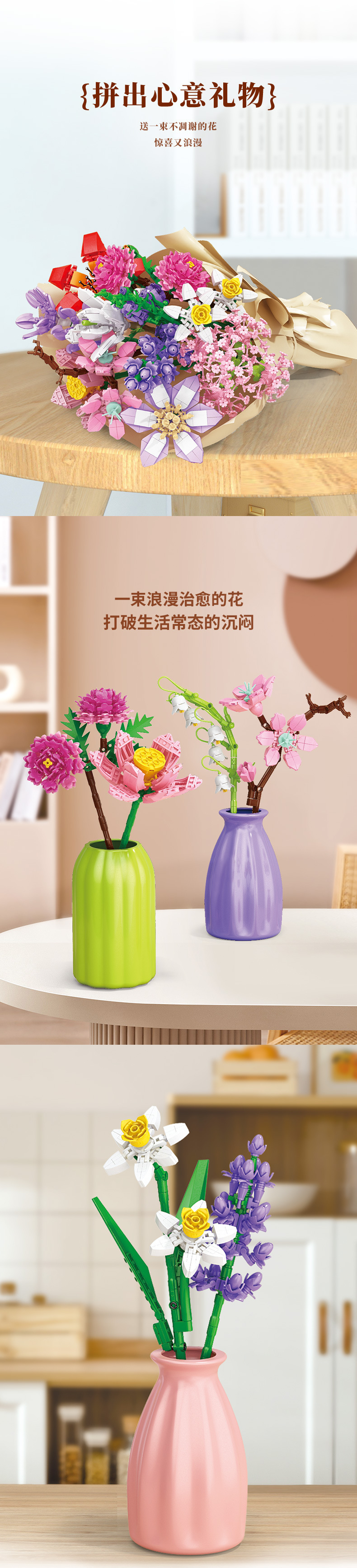 Lele Brothers Creative Bouquet Plant Potted Building Blocks Toy Children's Small Particle Ornaments Handmade Assembled Gift