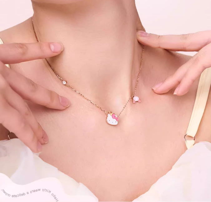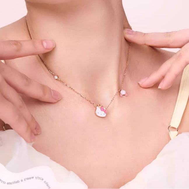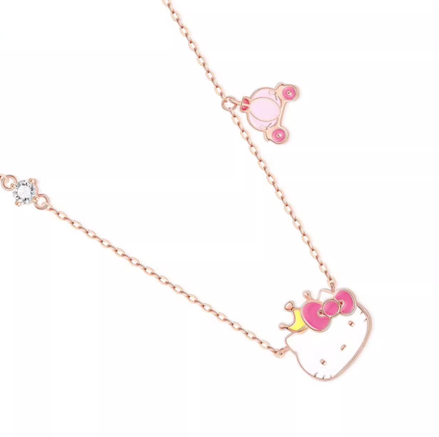 Sanrio Hellokitty Hello Kitty Pumpkin Car Pink Cute Necklace Accessible Luxury Simple Clavicle Chain Sweatshirt Chain