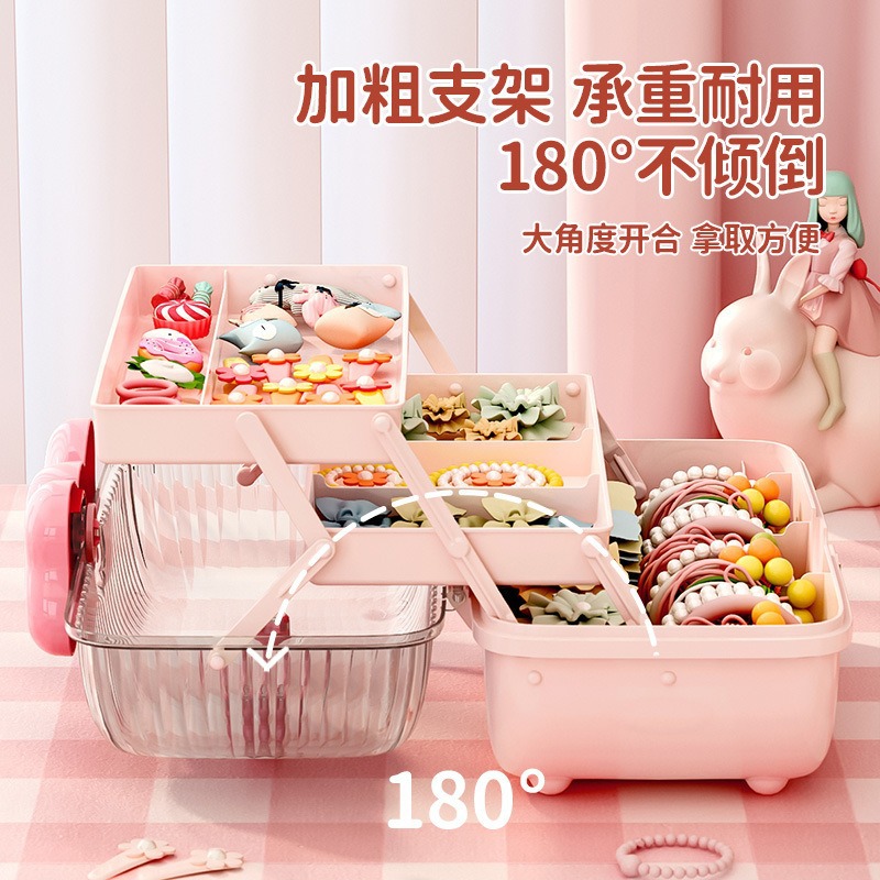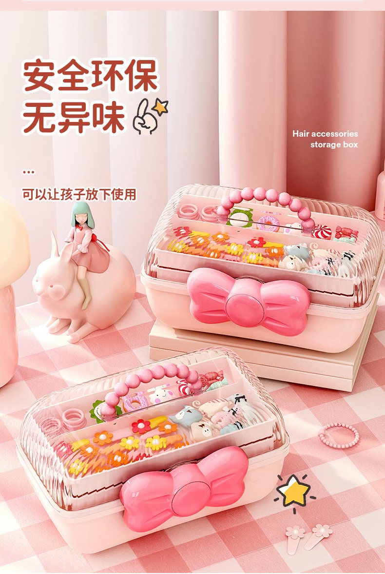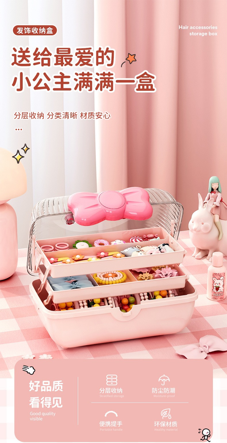 Hair Accessory Storage Box, Hair Ties, Necklaces, Large Capacity, Household, Transparent Lid, Layered Desktop, Children's Jewelry Accessories
