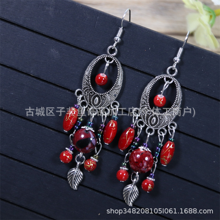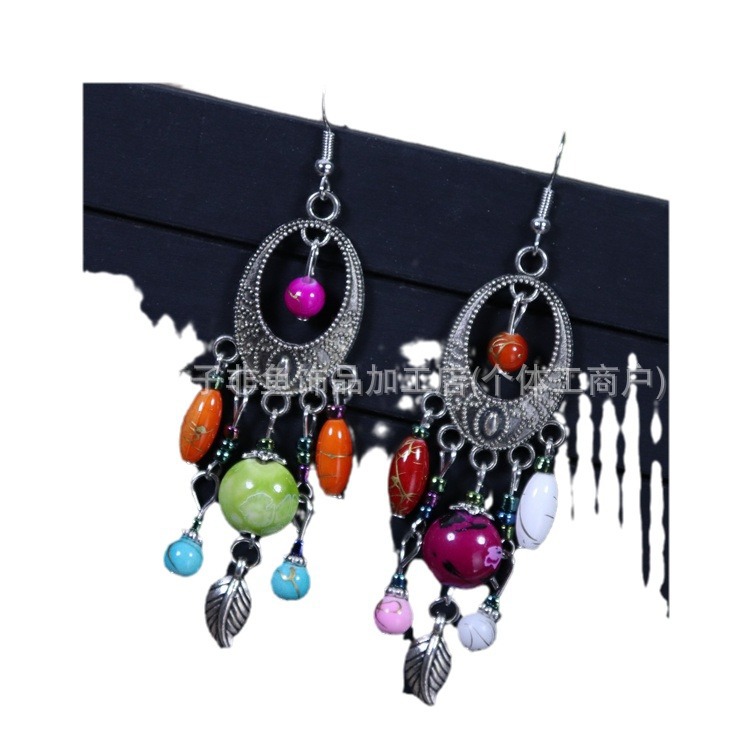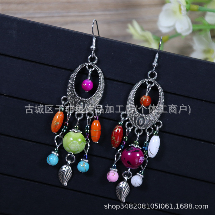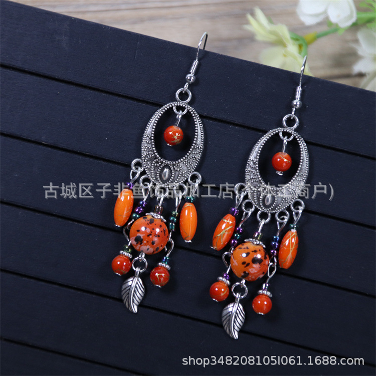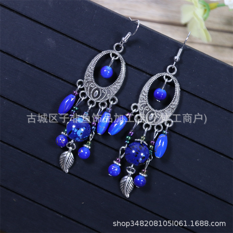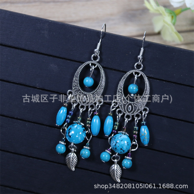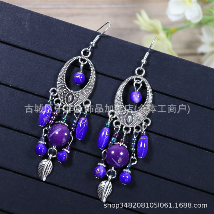 New Retro Earrings Long Ethnic Style National Style Earrings Exaggerated Bohemian Pendant Xizang Ancient Style Earrings