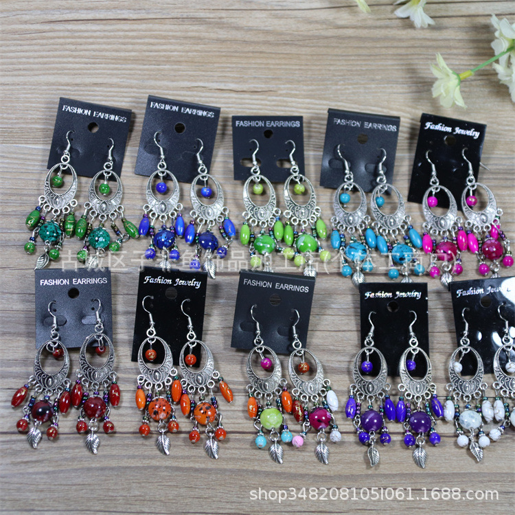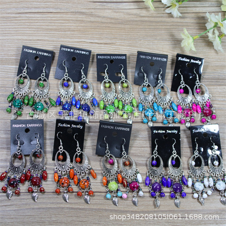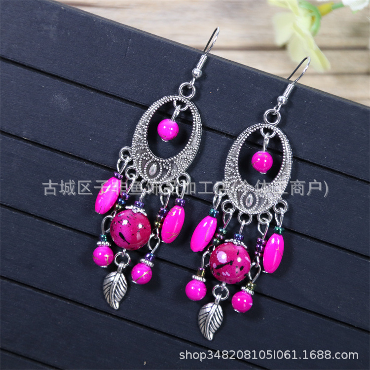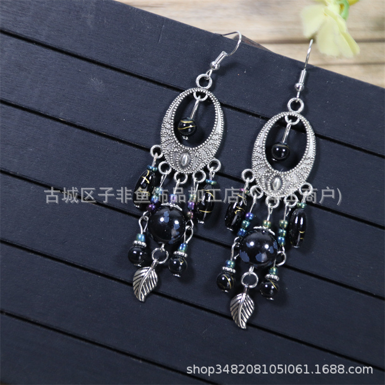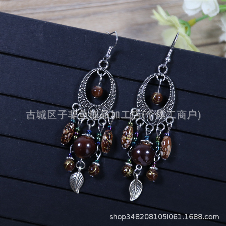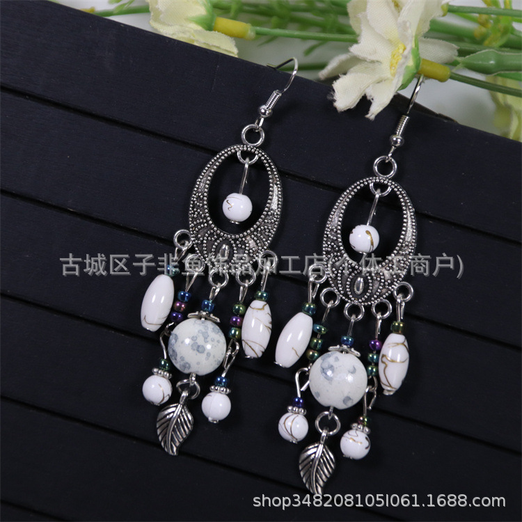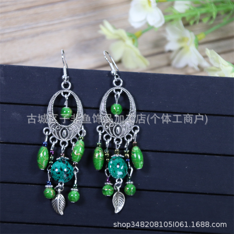 New Retro Earrings Long Ethnic Style National Style Earrings Exaggerated Bohemian Pendant Xizang Ancient Style Earrings