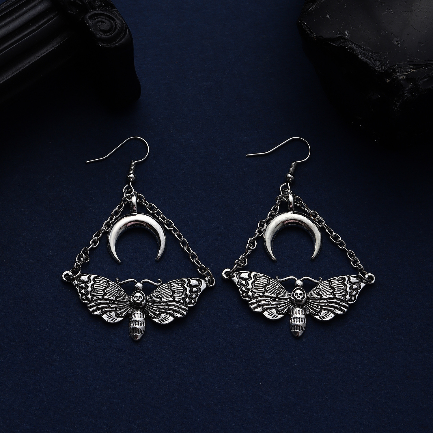 European and American Trend Dark Gothic Chain Moth Crescent Earrings Women's Ins Personalized Retro Creative Earrings Jewelry