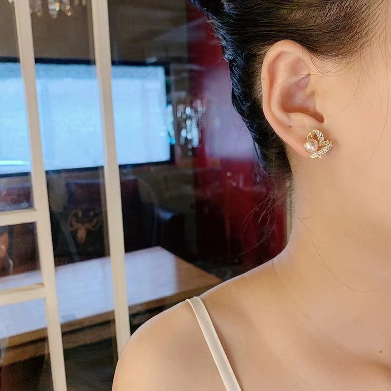 Color: Spiral Full Diamond Pearl Stud Earrings
