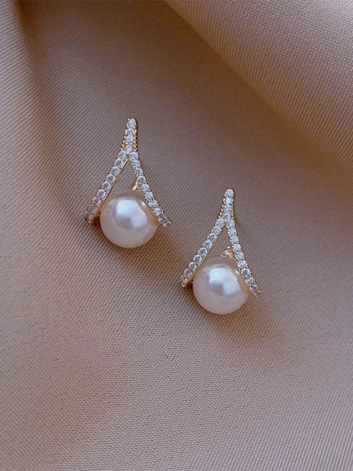 Color: Triangle Pearl Stud Earrings