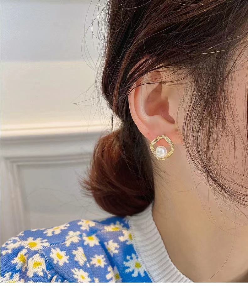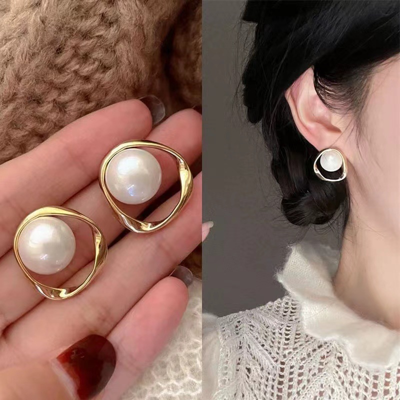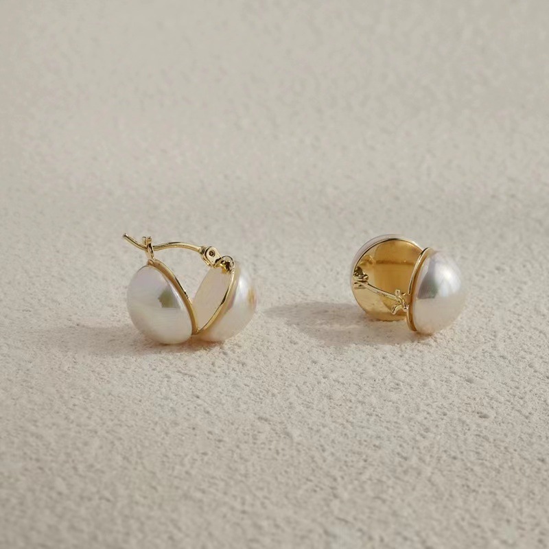 Color: Metal Half Face Pearl Stud Earrings