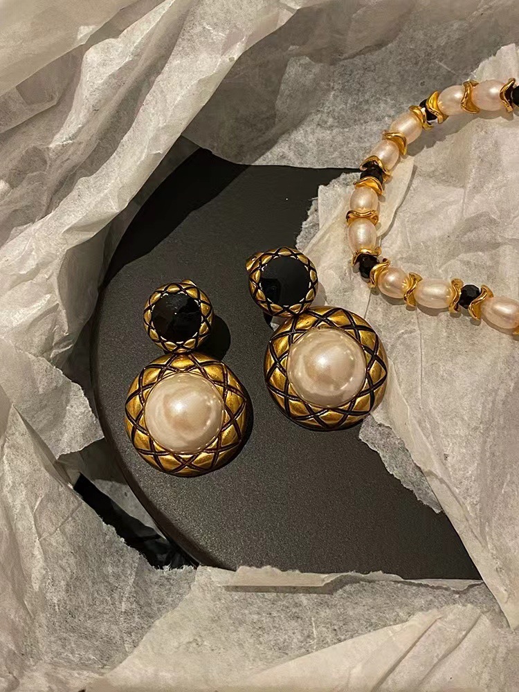 Color: Vintage Half Face Pearl Stud Earrings