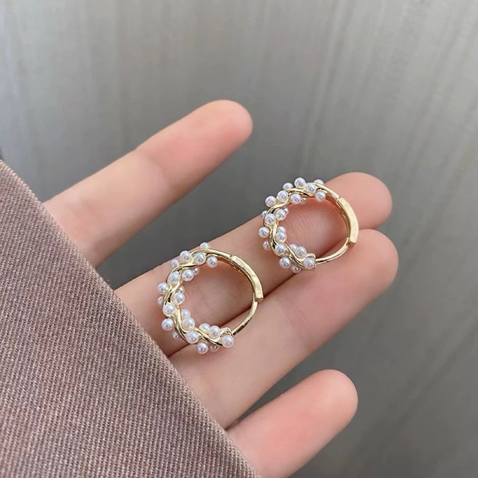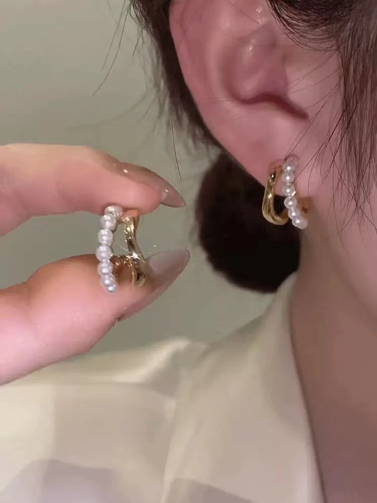 Color: Double-row pearl studded earrings