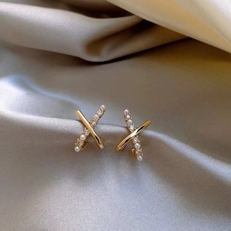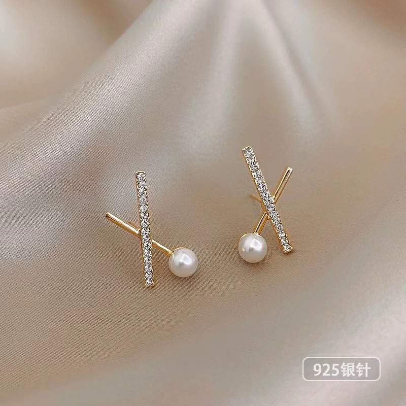 Color: Cross full diamond AB surface pearl earrings