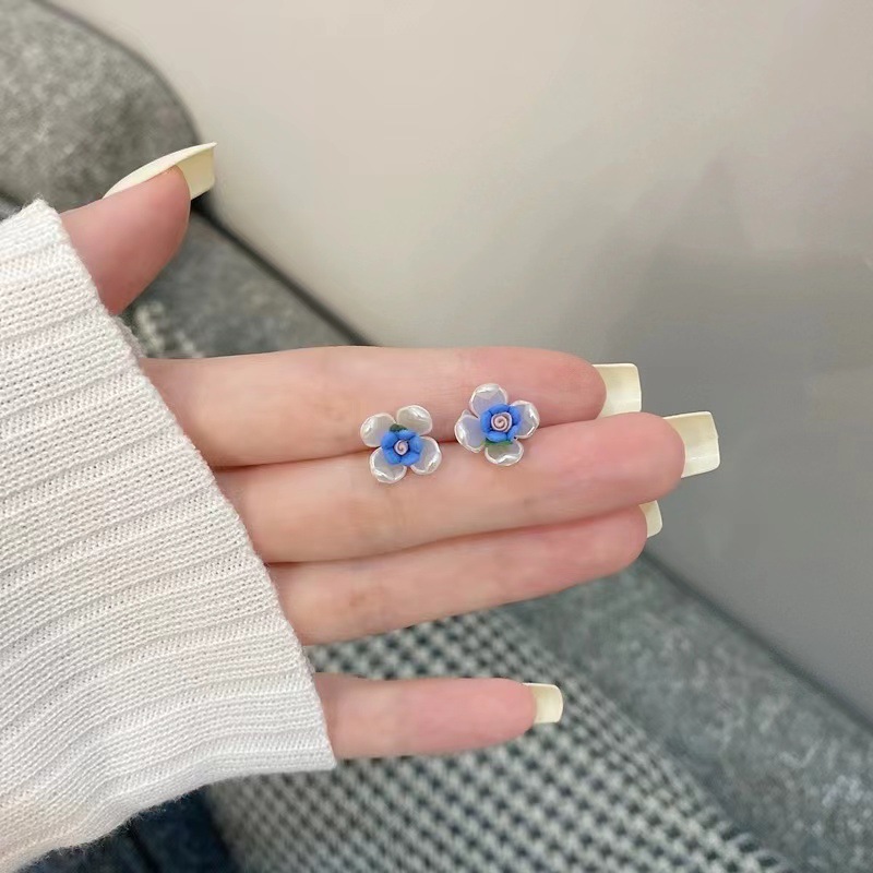 Color: Pearl soft pottery blue flower stud earrings