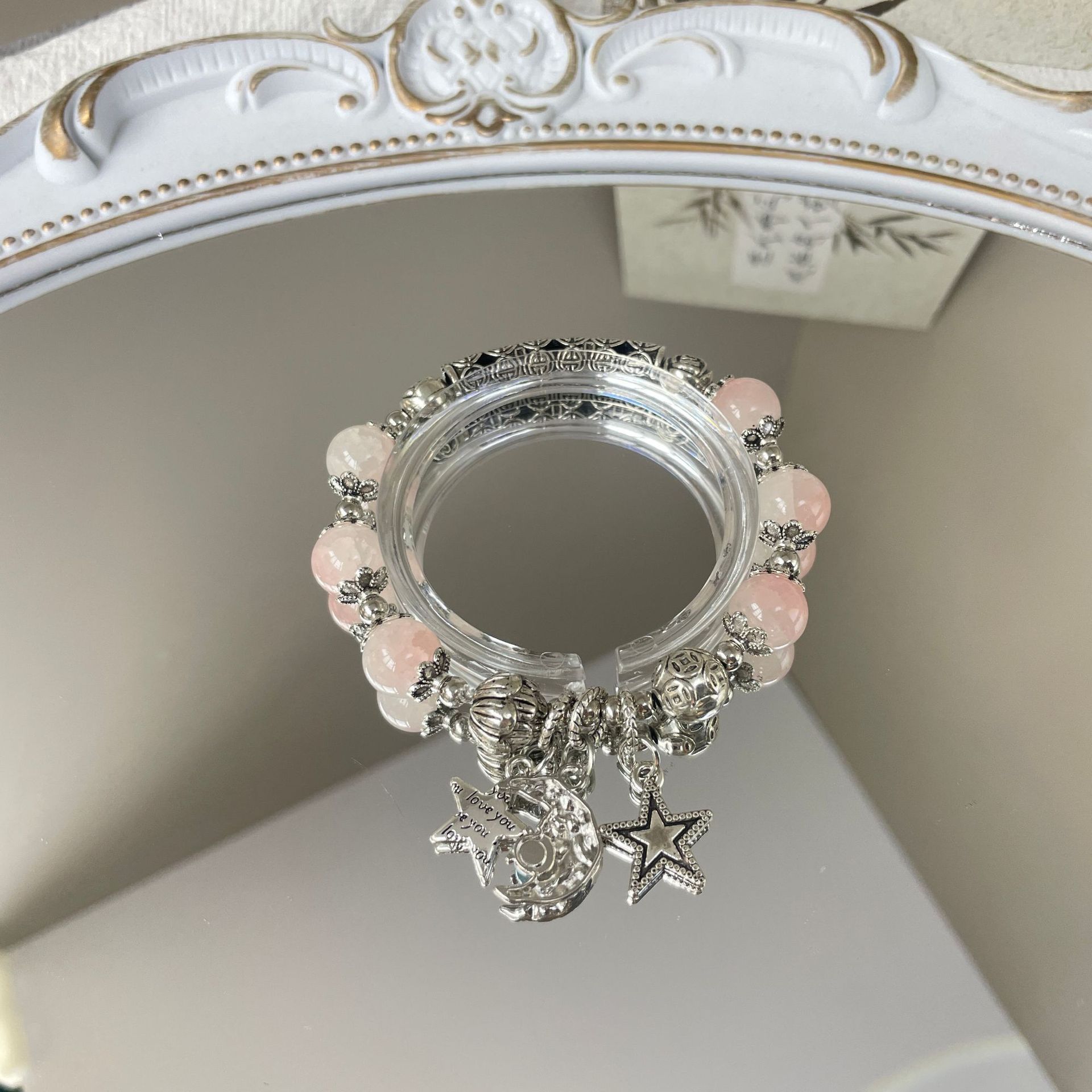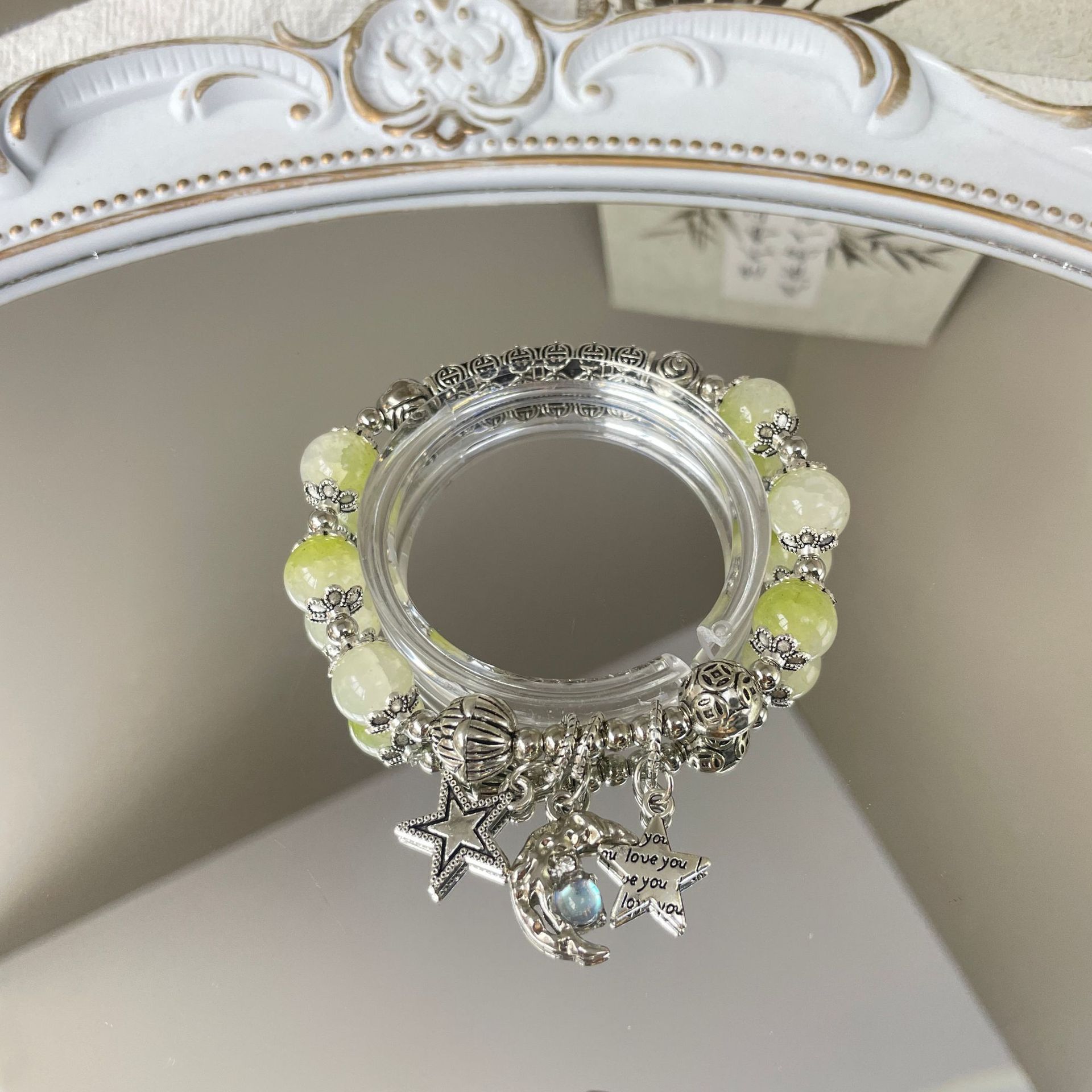 Color: S179-white bead diamond star and moon glass bracelet#Sz055