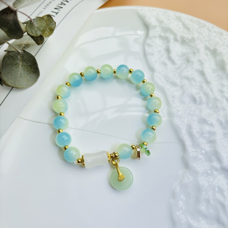 Color: S070-12mm bracelet [ice blue] glass material#Sz557