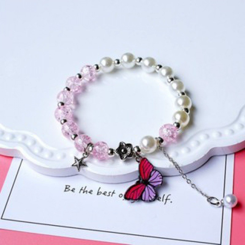 Color: S078-s078-pink bucket beads pink butterfly bracelet#Sz–616