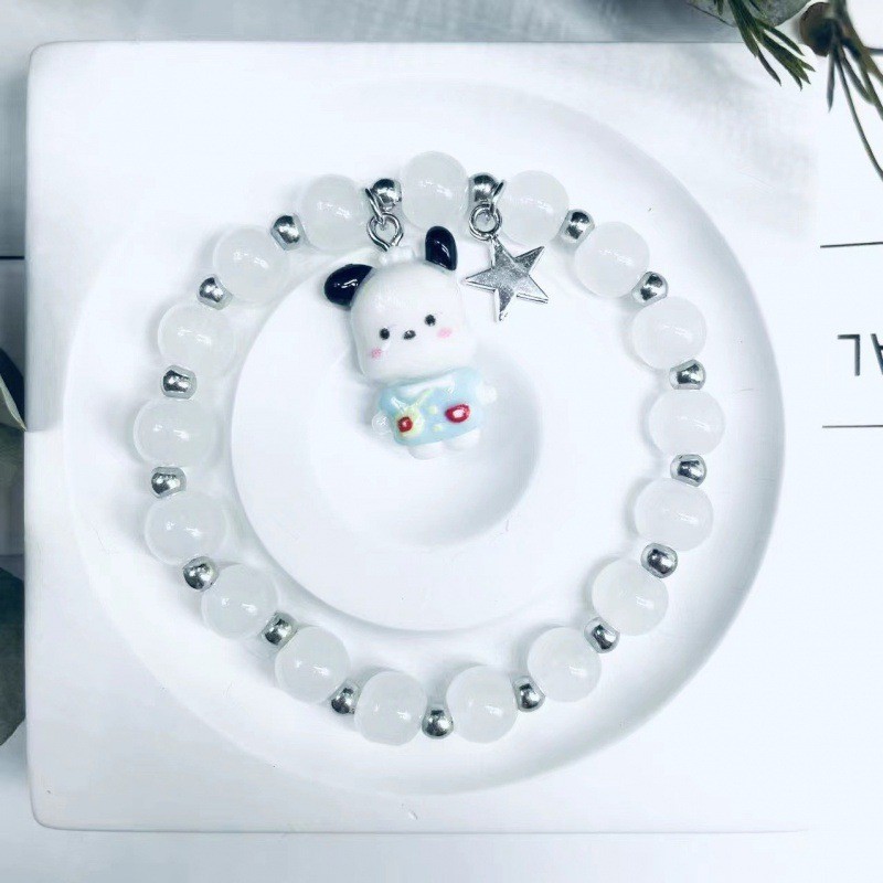 Color: S006-white cinnamon dog doll silver bracelet#Sz–386