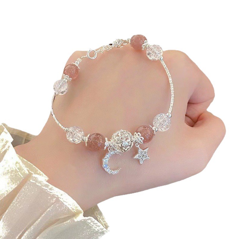 Color: S179-red bead diamond star and moon glass bracelet#Sz054