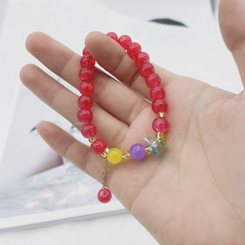 Color: S069-explosive red beaded bracelet#Sz552