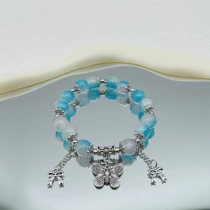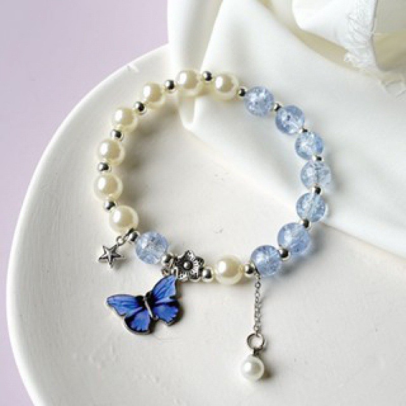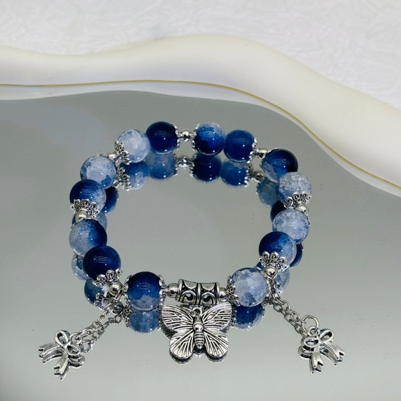 Color: S078-s078-blue barrel beads blue butterfly bracelet#Sz618