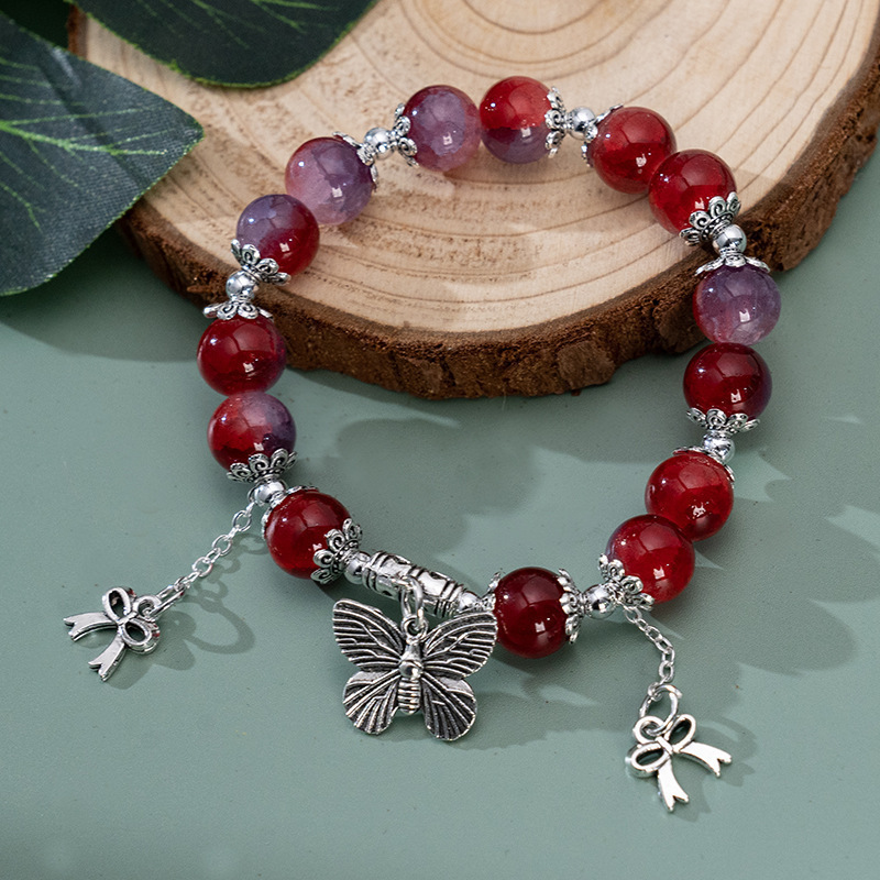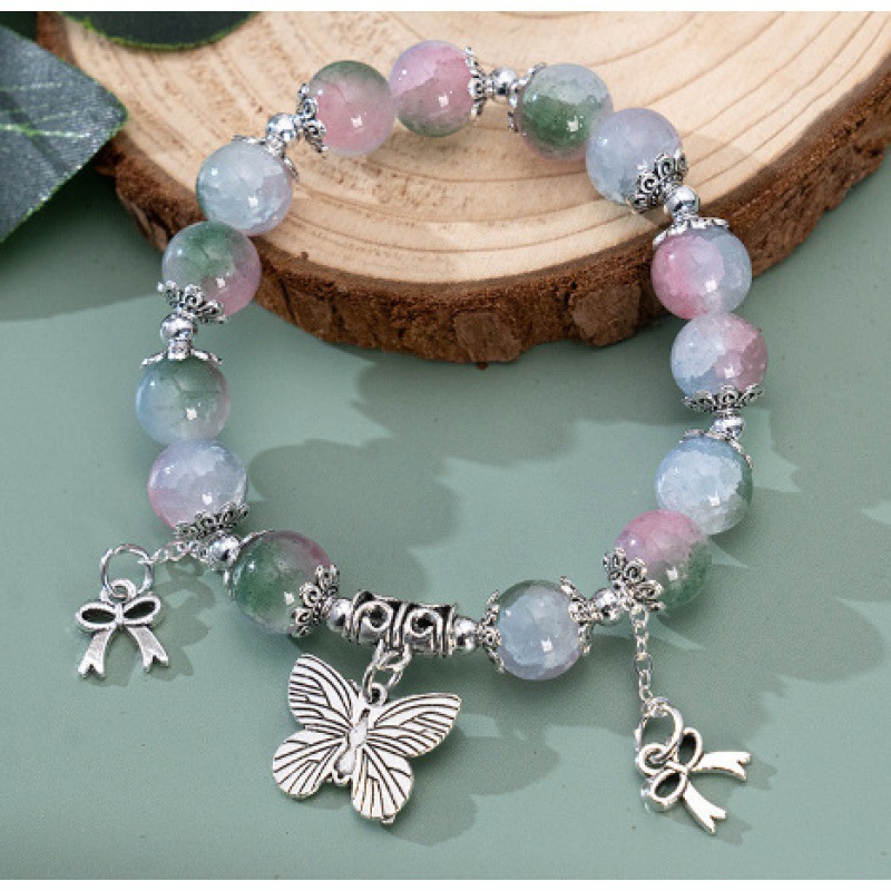 Color: S012-jade broken butterfly bracelet [rose pink]#Sz274