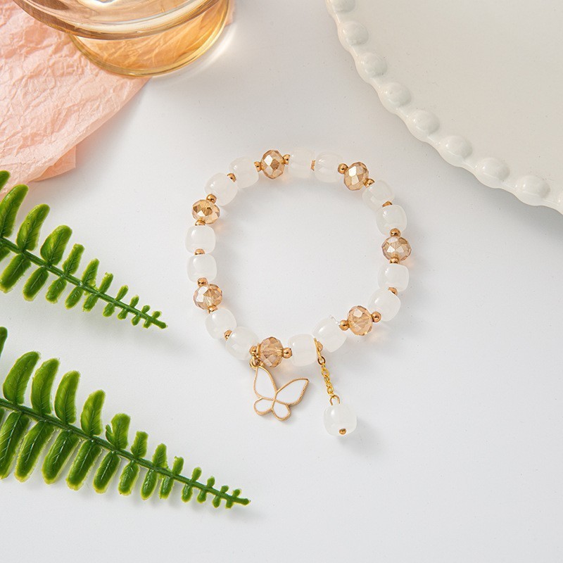 Color: S078-s078-white barrel beads and white butterfly bracelet#Sz614