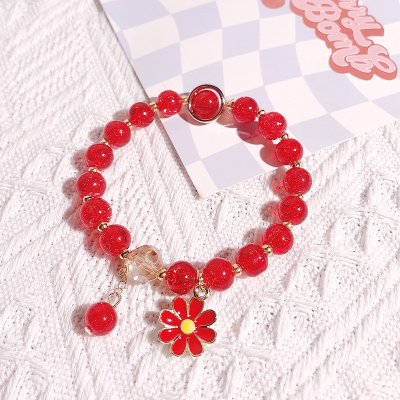 Color: Pink beads s060-big red daisy bracelet#Sz533