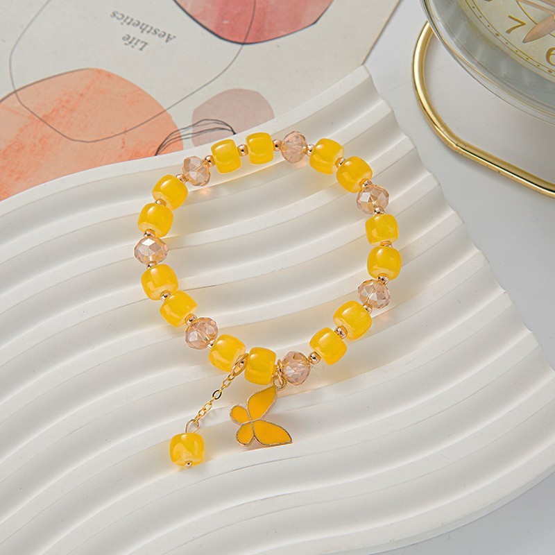 Color: Colorful bucket beads yellow butterfly bracelet # Sz617