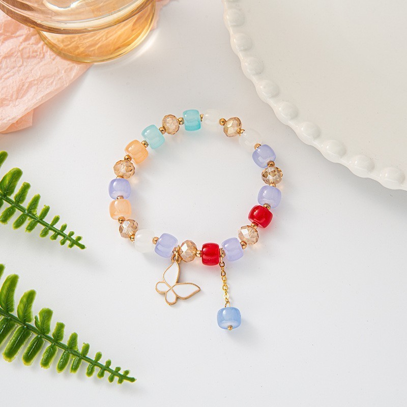 Color: S078-s078-colorful barrel beads white butterfly bracelet#Sz622