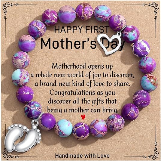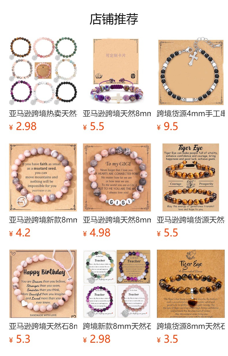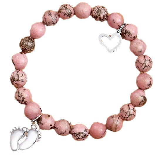 Amazon Cross-border Hot Sale 8mm Natural Stone Powder Zebra Bracelet Love Foot Mother Teacher Gift Hand String Jewelry