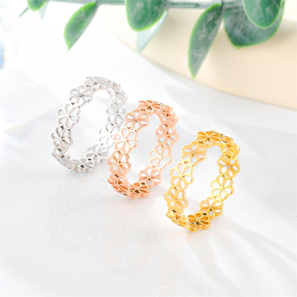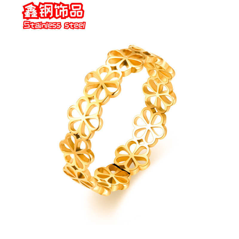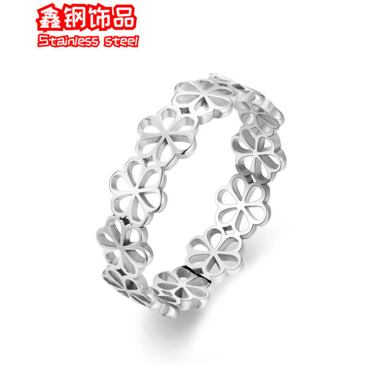 European and American in stock titanium steel six-petal flower ring women's plain ring does not fade niche light luxury lovers ring ring jewelry