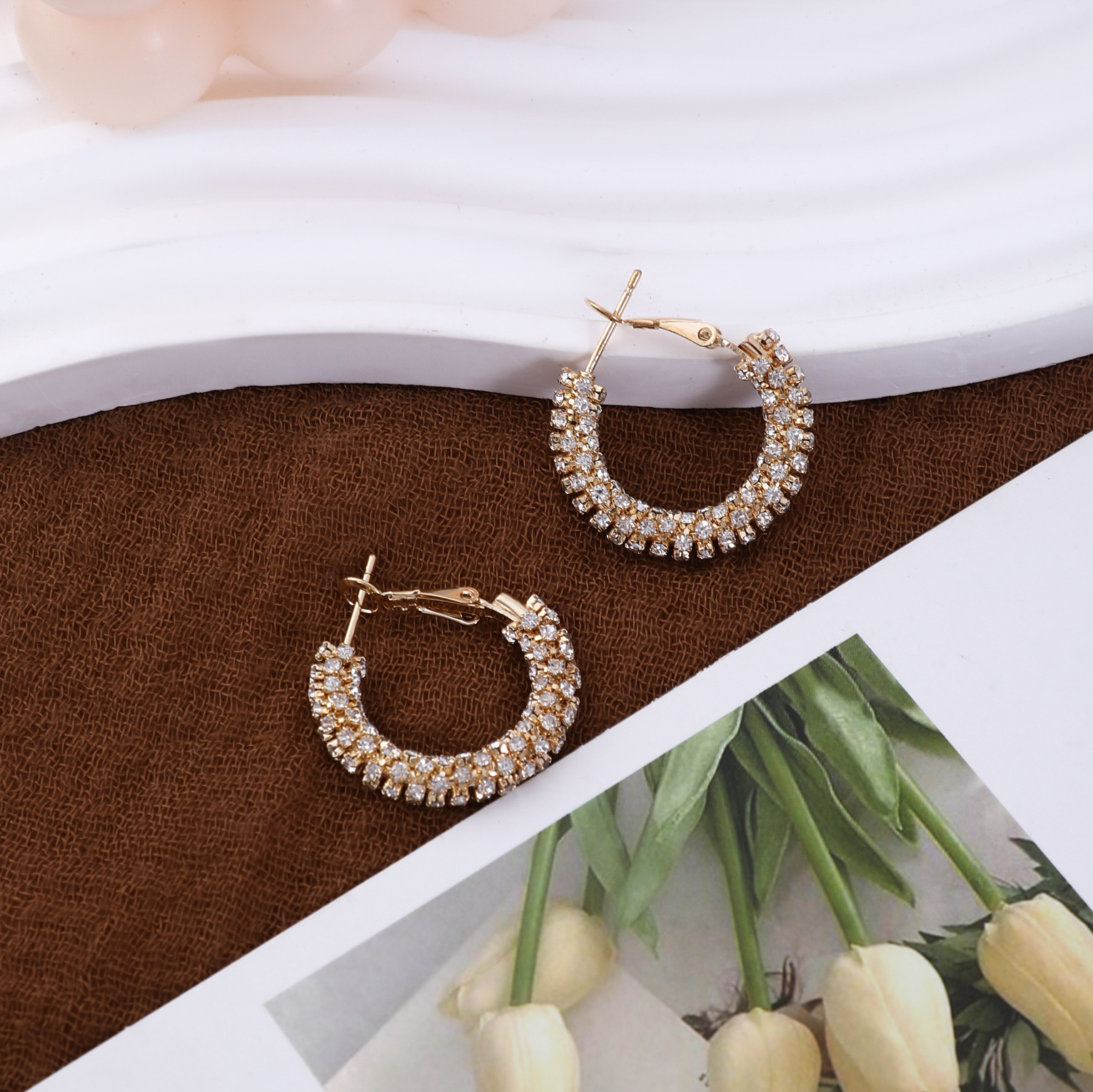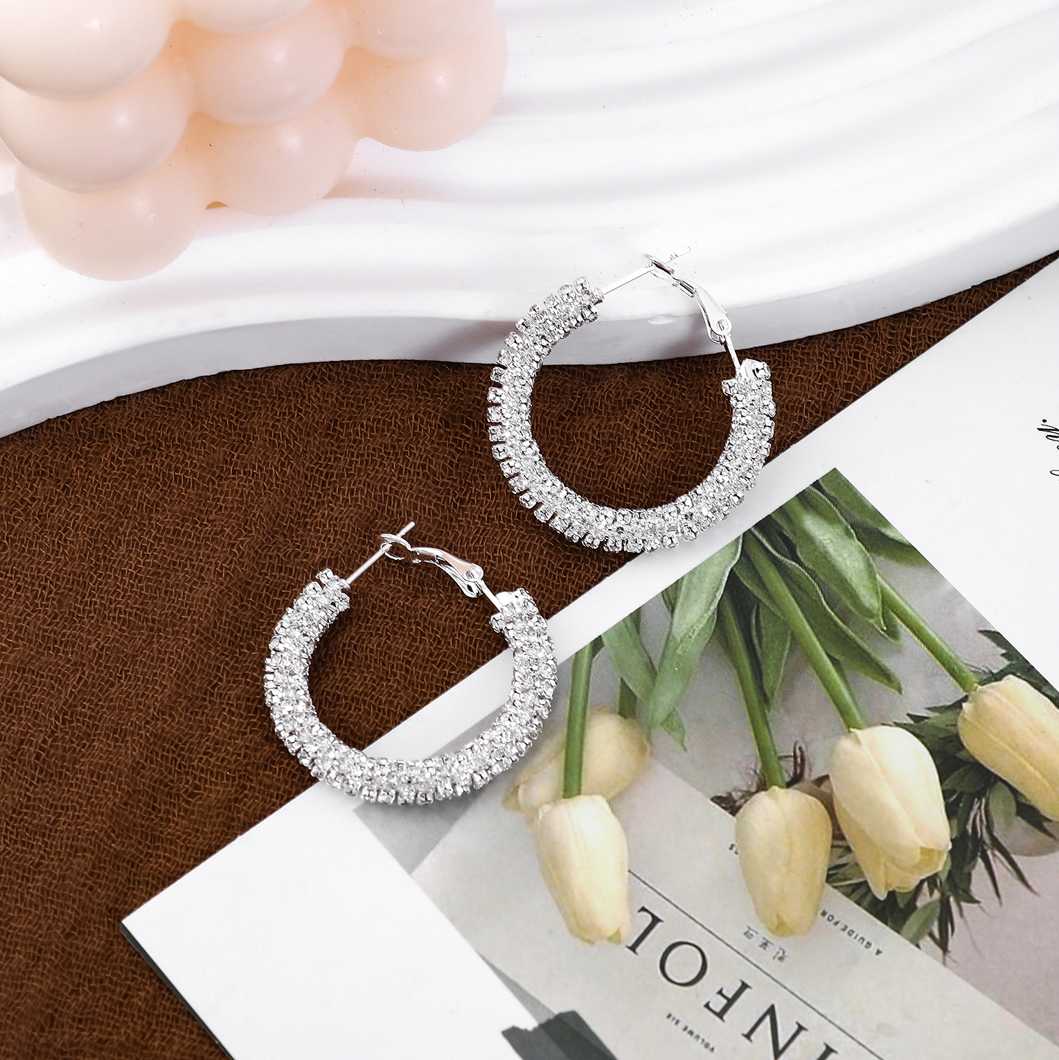 European and American Popular Elegant Large Hoop Earrings Handmade Fashionable Stylish Full Diamond Earrings Accessible Luxury High-End Niche Earrings