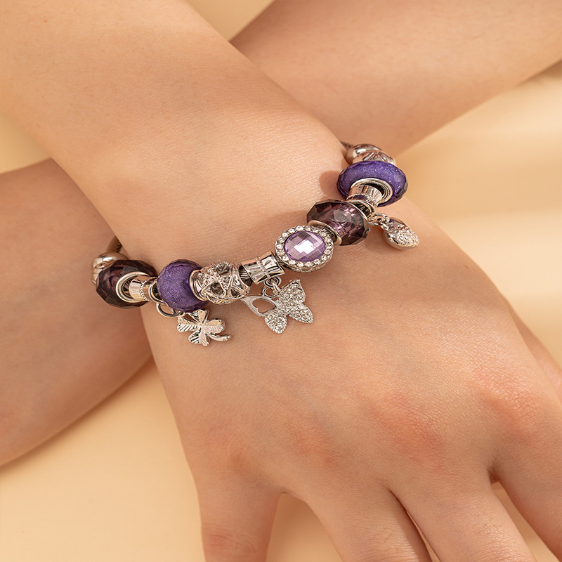 Panjia Bracelet Dora DIY Beaded Cross-border Explosions Crystal Beads Alloy Leaves Butterfly Sticky Diamond Pendant Bracelet