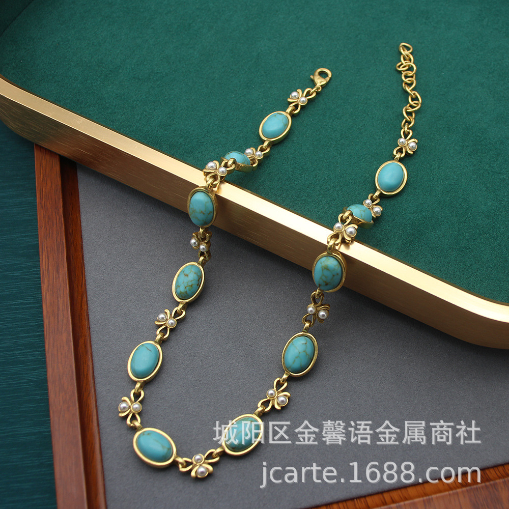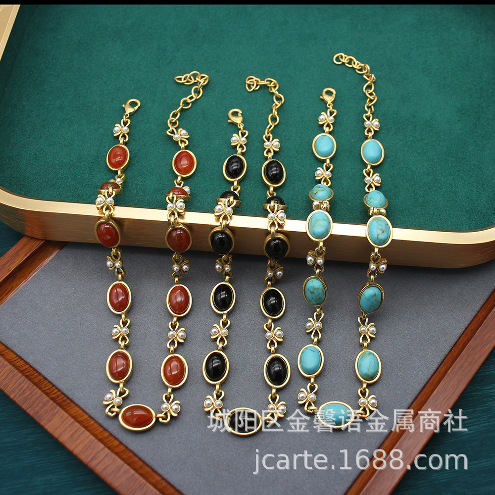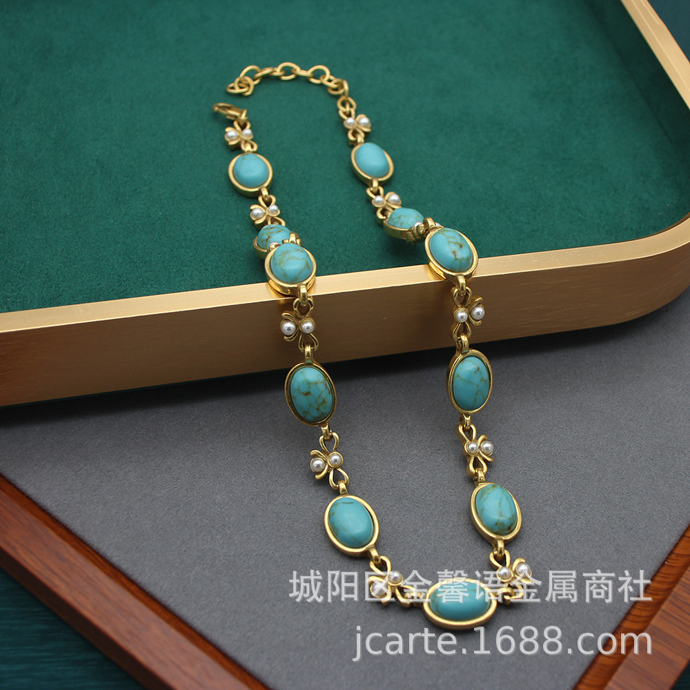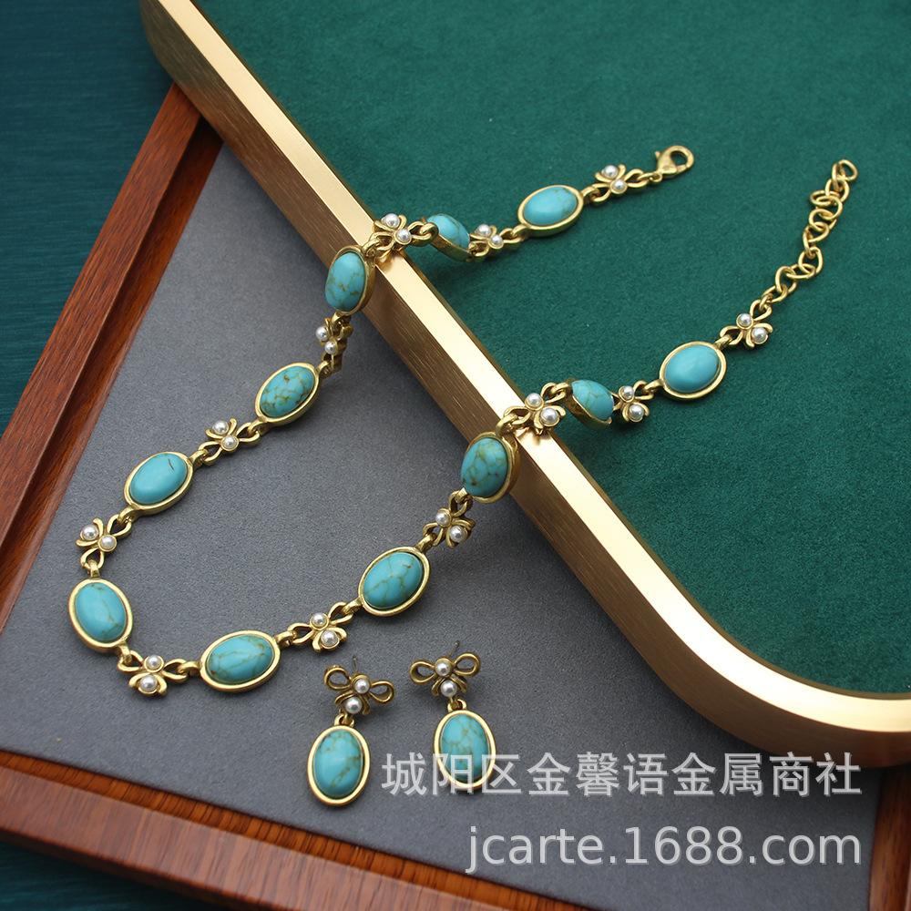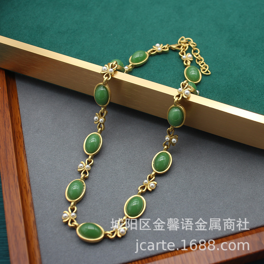 Necklace High-grade Accessories Vintage Old Oval Black Glass Necklace Ear suit Simple Bow Collarbone
