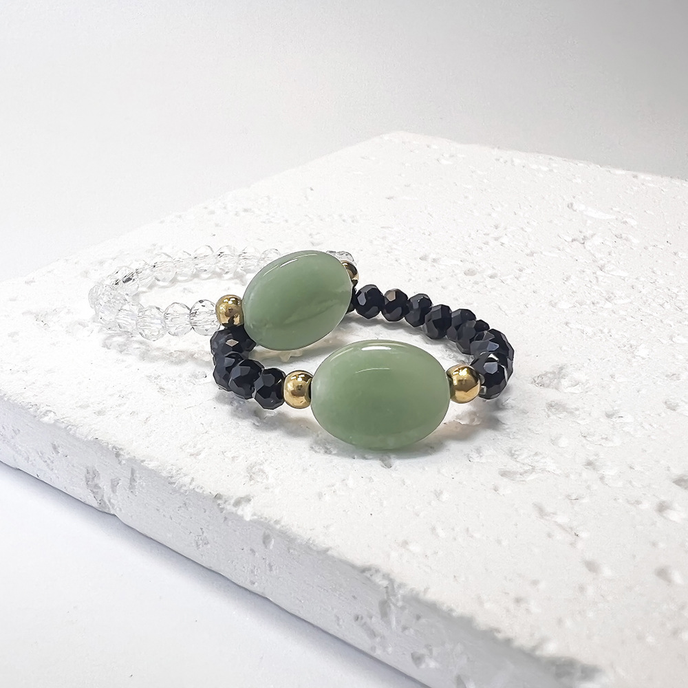 Cross-border Popular Cute Glass Luminous Beaded Ring Simple Black and White Color Matching Couple Elastic Index Finger Ring