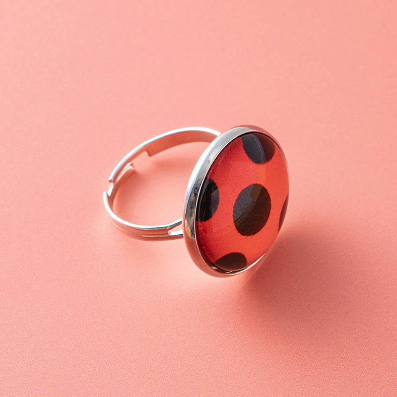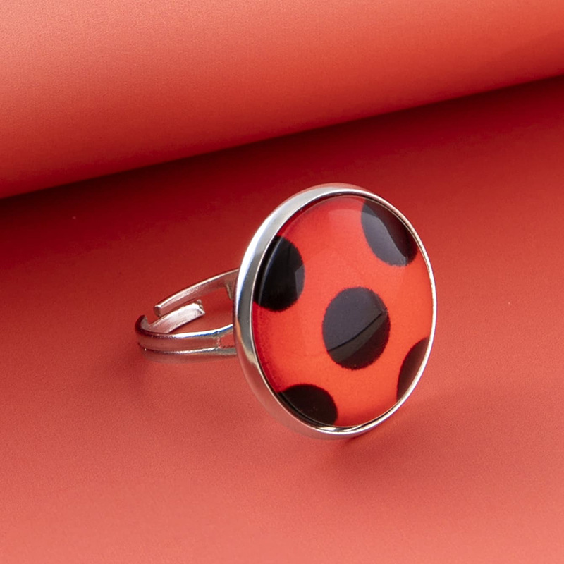 Anime Cartoon Ladybug Time Glass Ring Women's silver Open Ring Adjustable Ring