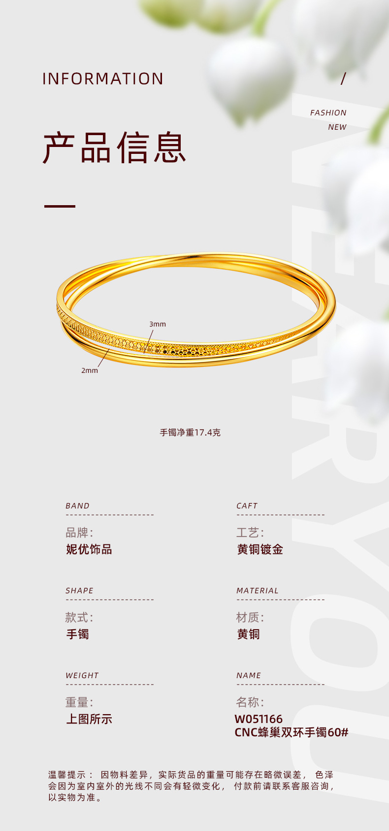 Item number: W051166 cnc honeycomb double ring bracelet 60#