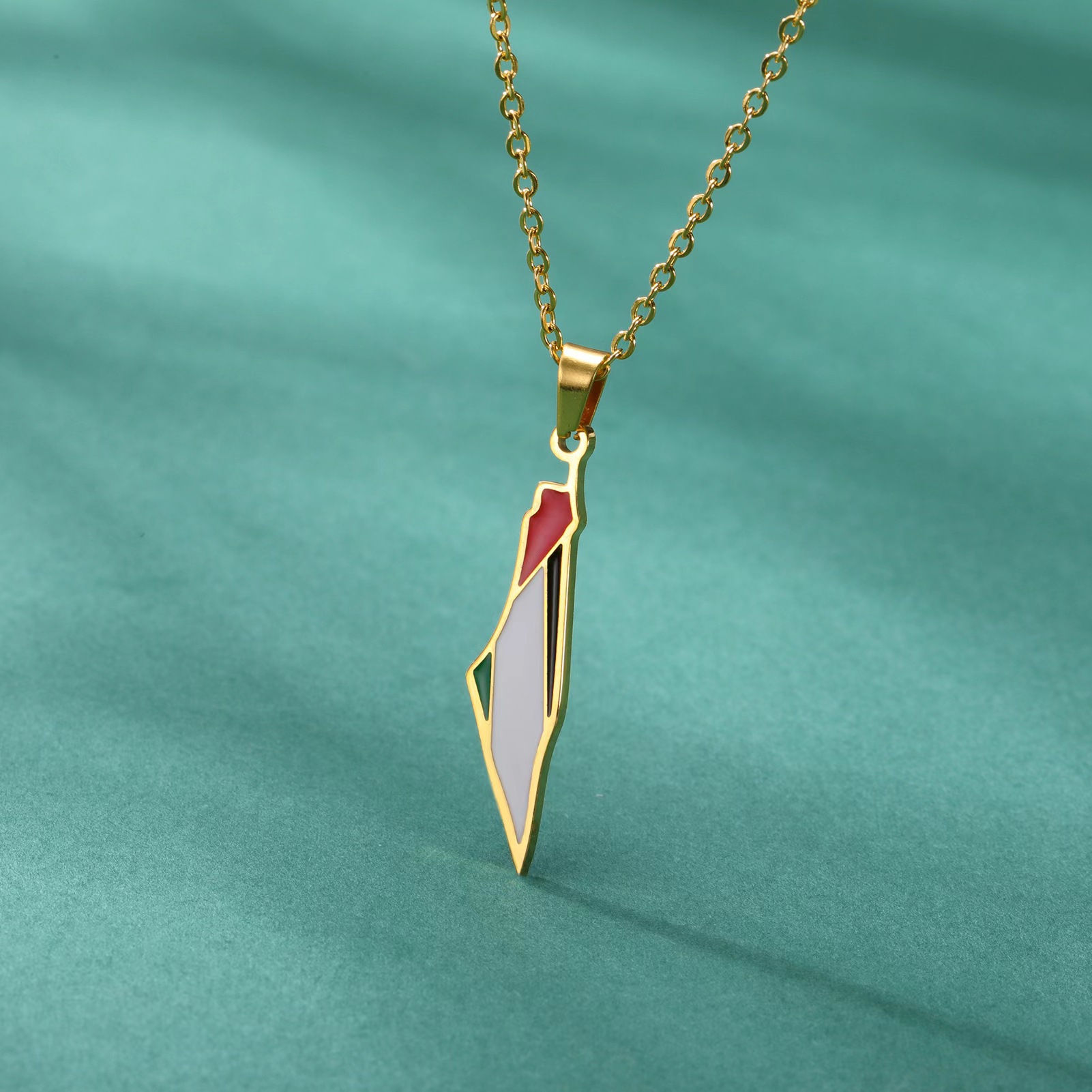 Creative New Israeli Palestine Map Pendant Flag Necklace European and American Fashion Simple Personalized Jewelry
