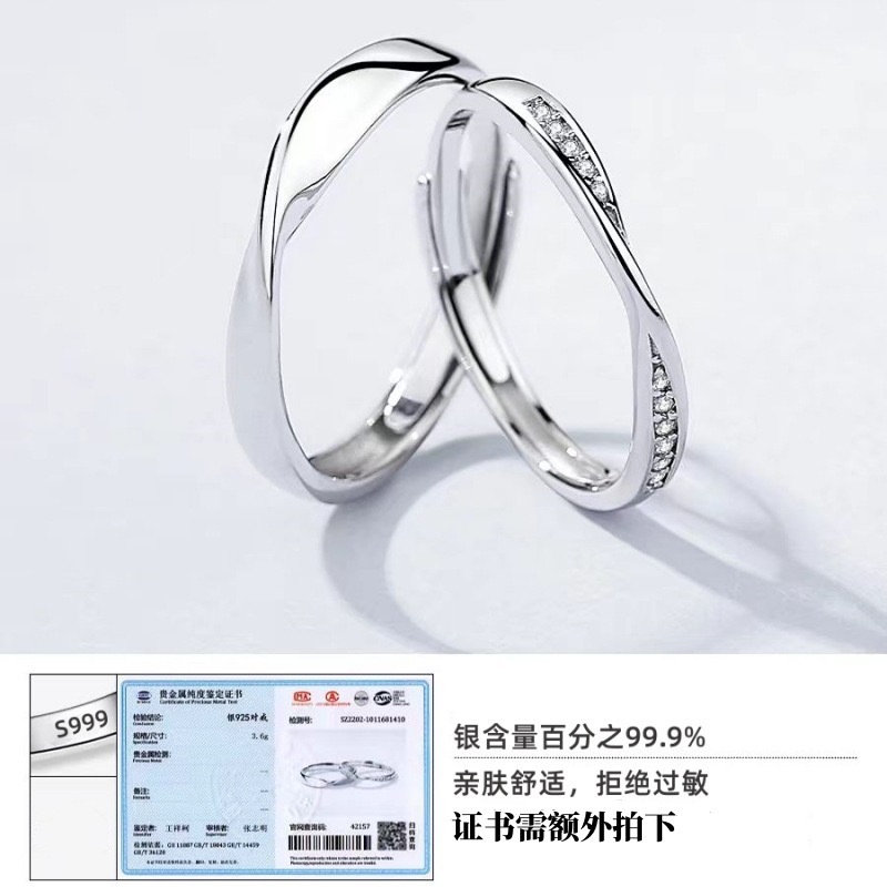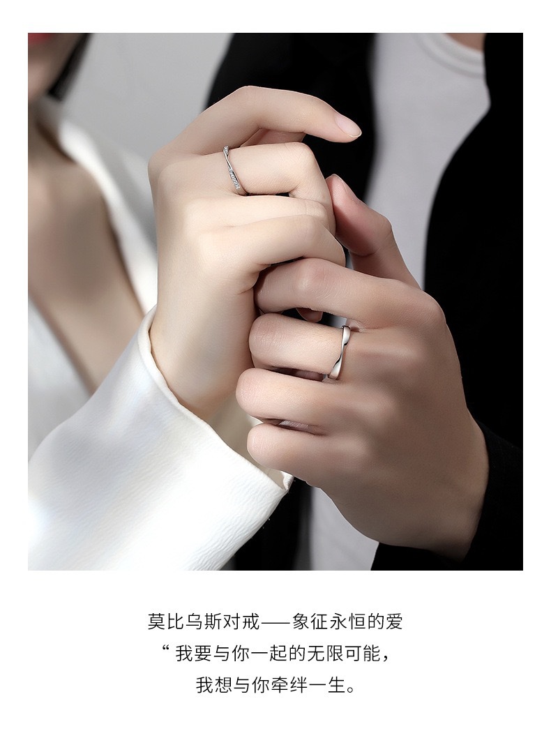 S999 Foot Silver Couple's Ring Mobius Ring Sterling Silver Simple Fashion Ring Unisex Plain Ring for Girlfriend