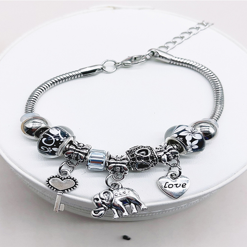 Panjia Bracelet Dora DIY Beaded Cross-border Explosions Heart-shaped Key Elephant Pendant Crystal Beads Love Copper Bracelet
