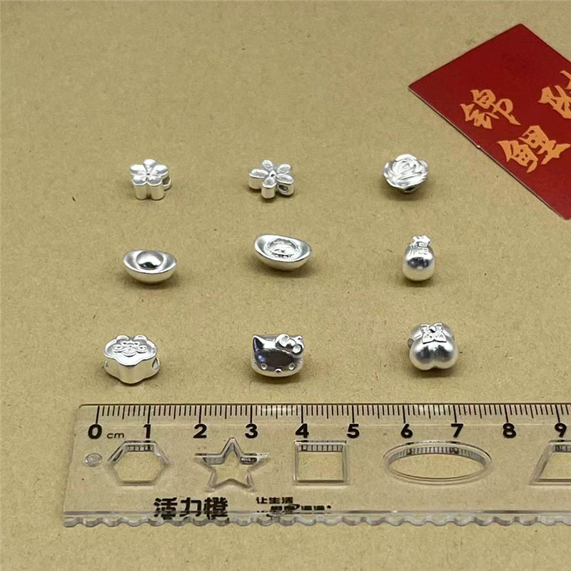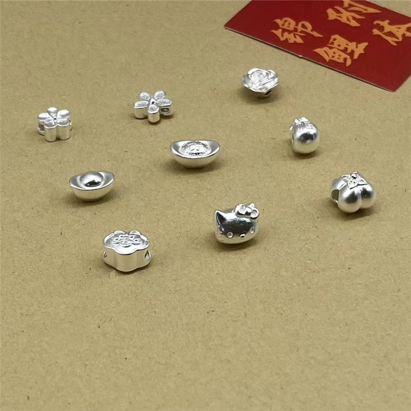 Foot silver 999 sterling silver accessories lucky bag peach blossom ingot bracelet diy jewelry across accessories pendant hand rope 3D hard silver