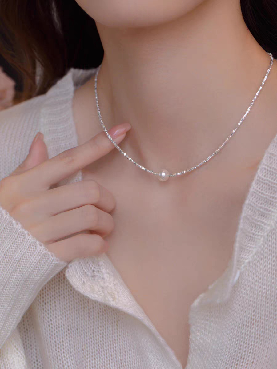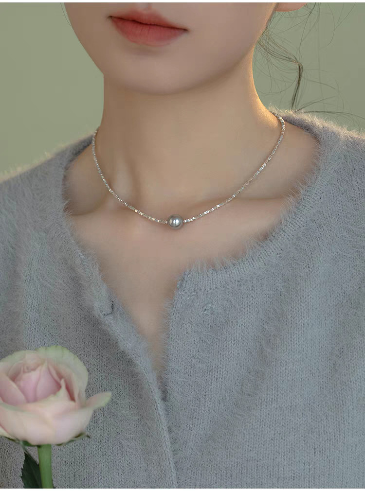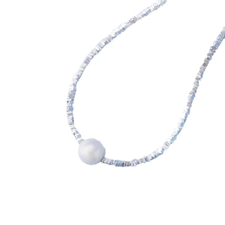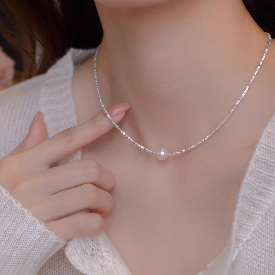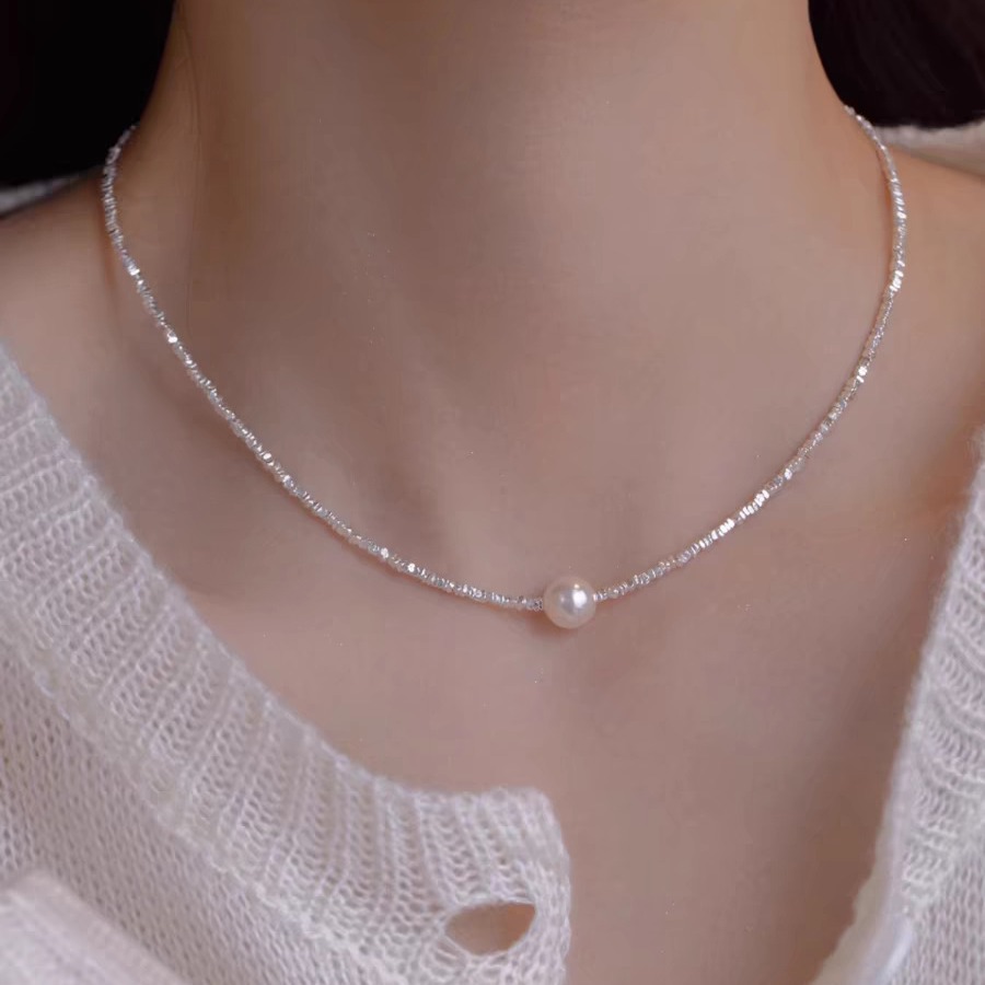 high quality Broken Silver Pearl Necklace Women's 2024 New Explosive Light Luxury Niche Collarbone Chain Summer Cold Wind Neck Chain