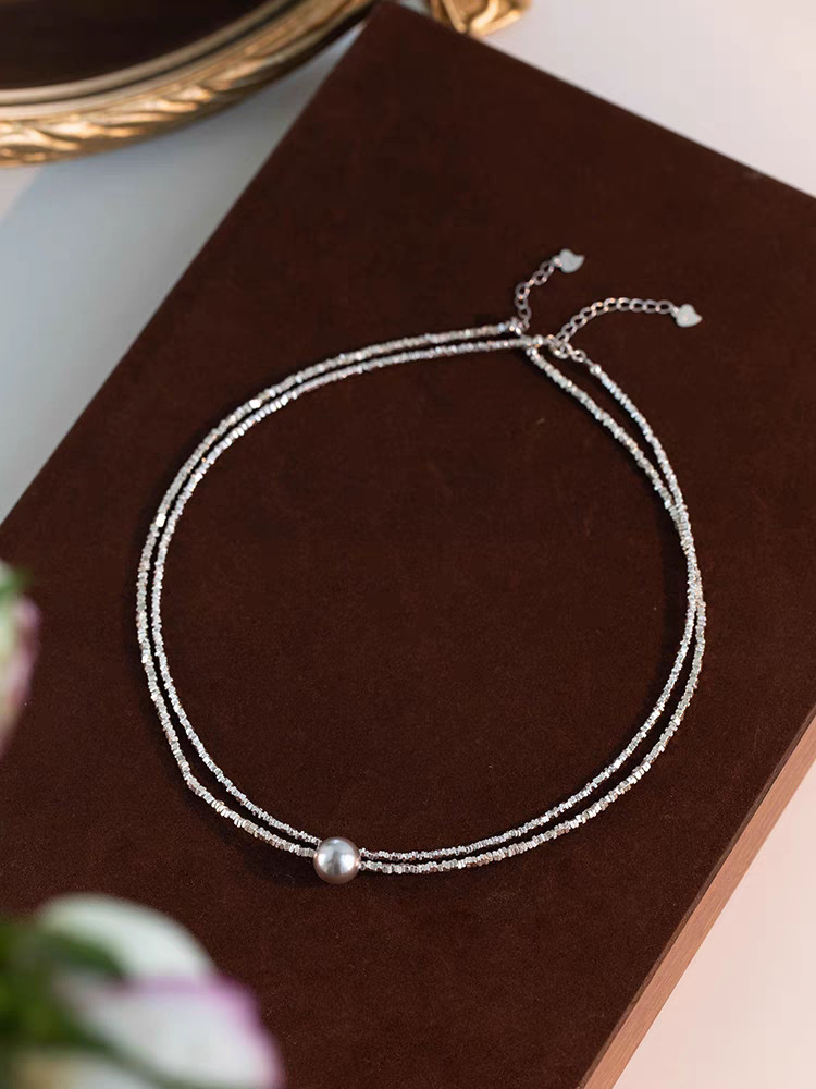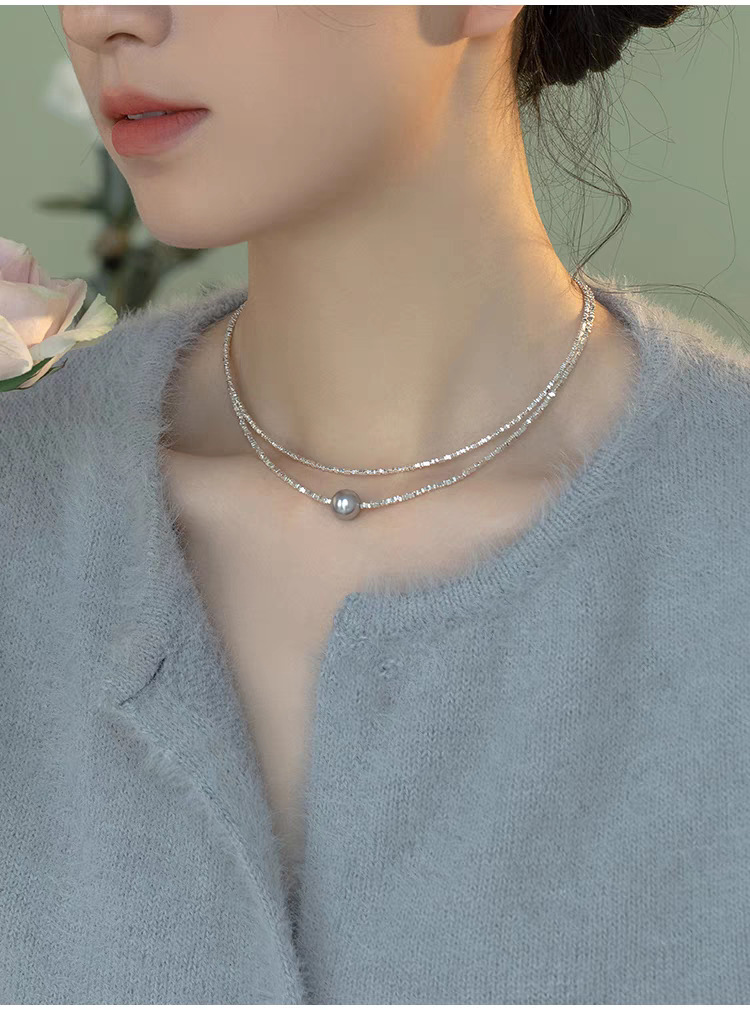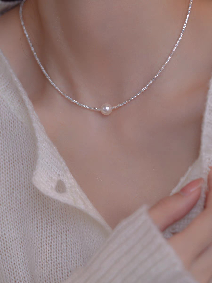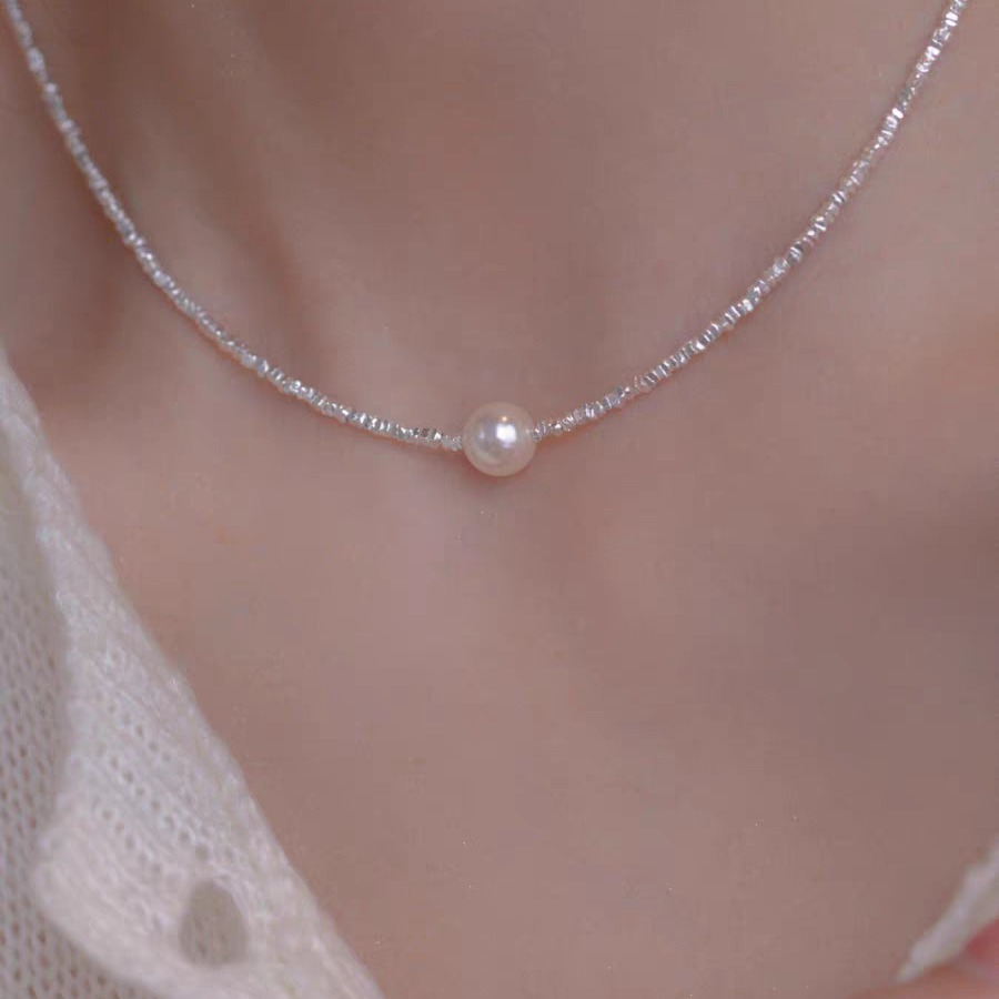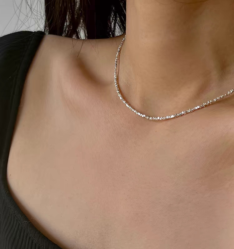 high quality Broken Silver Pearl Necklace Women's 2024 New Explosive Light Luxury Niche Collarbone Chain Summer Cold Wind Neck Chain