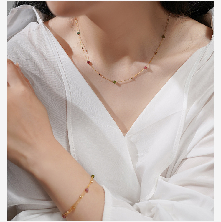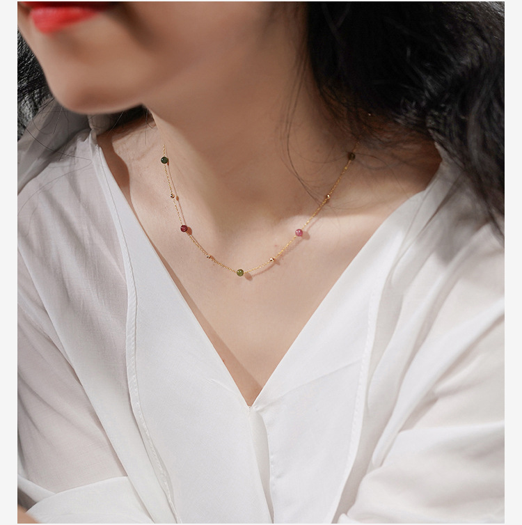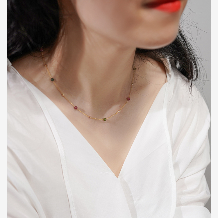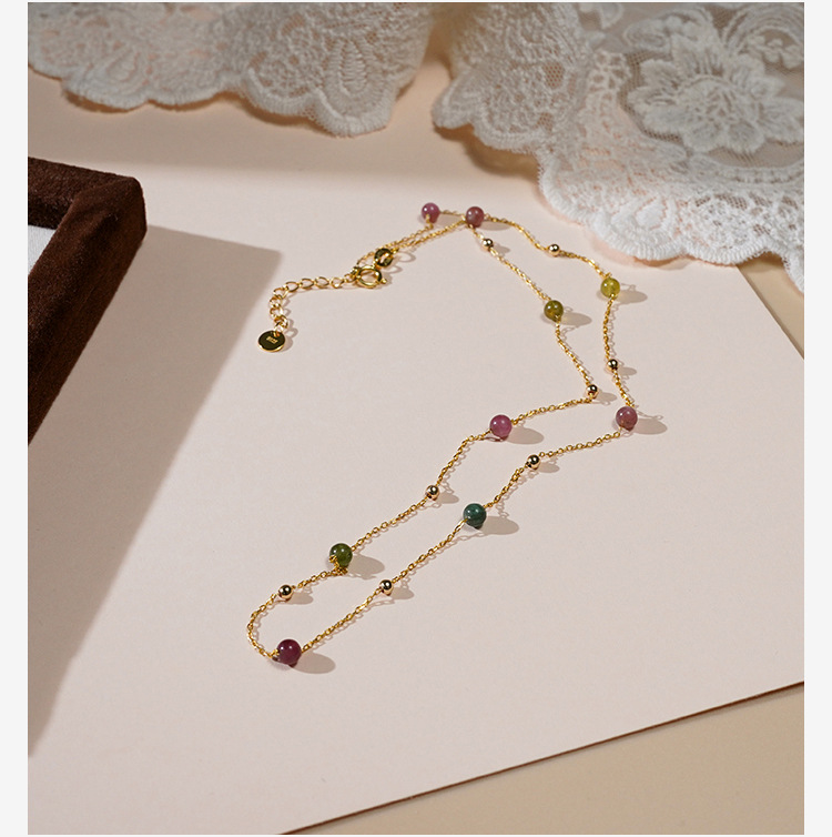 Niche Design Candy Rainbow Tourmaline Gold Bead Gypsophila Necklace 925 Silver Sweet Girl Clavicle Chain 40491