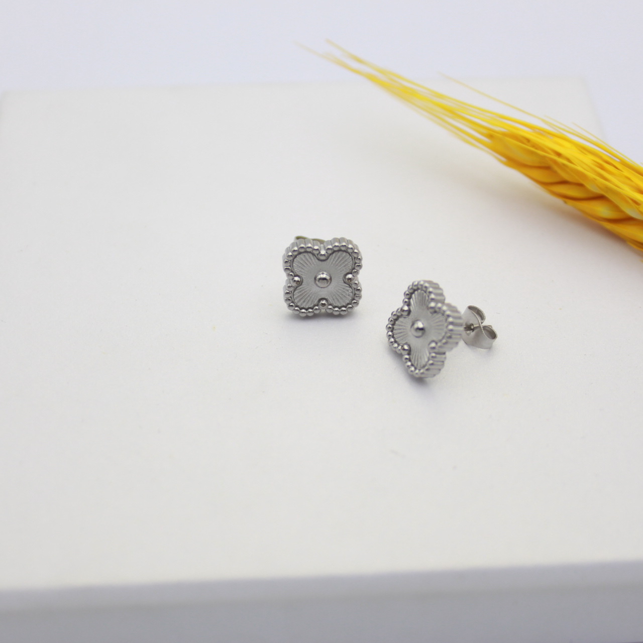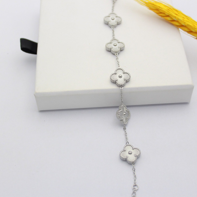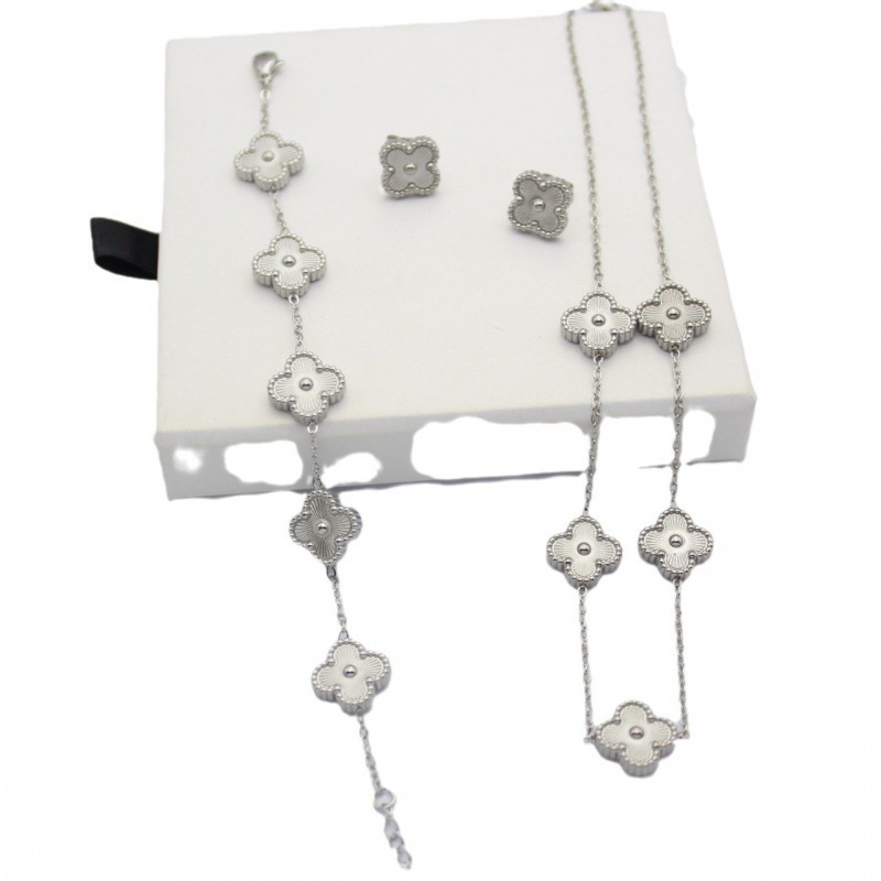 Fashion All-match Trendy Jewelry Five-flower Jewelry suit Four-leaf Grass Laser Bracelet Necklace Earrings Titanium Steel Simple Temperament