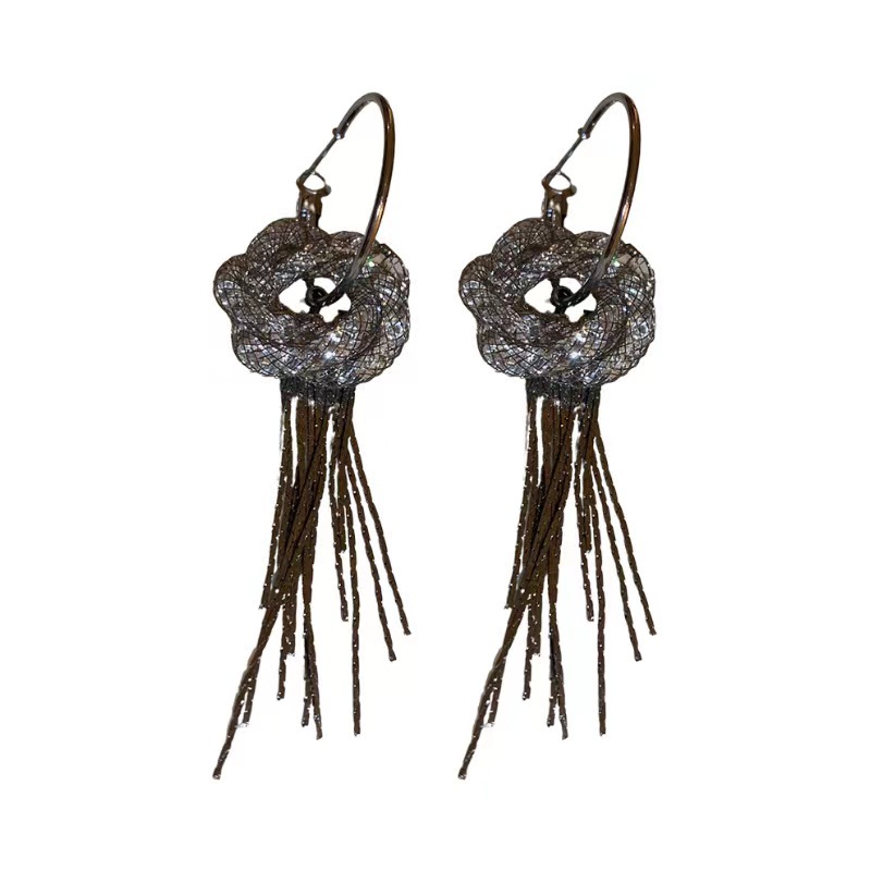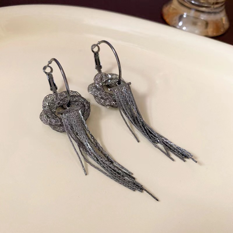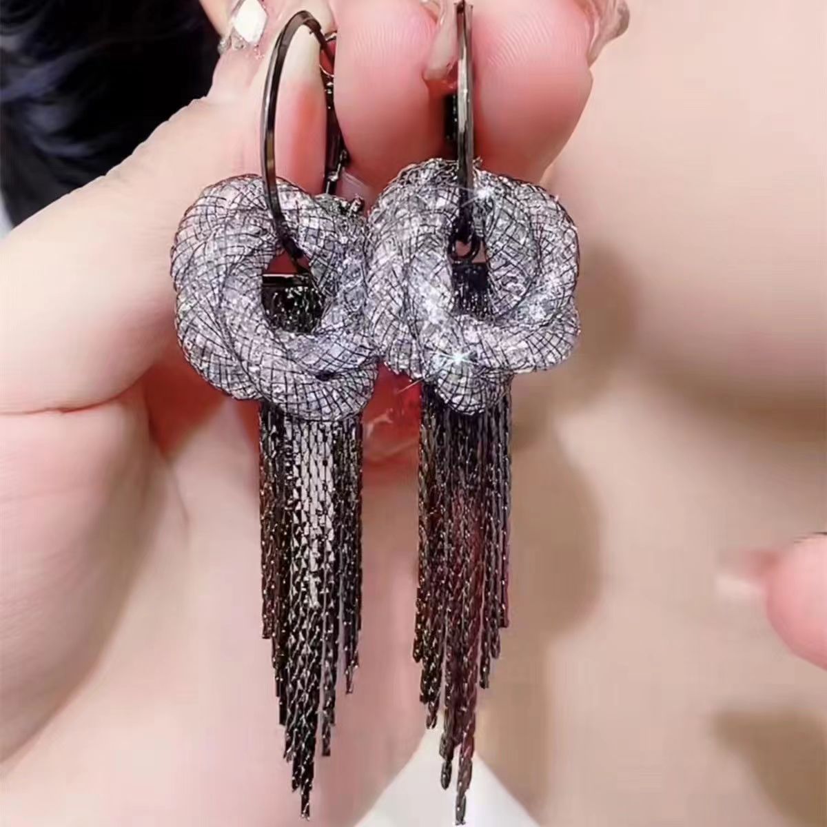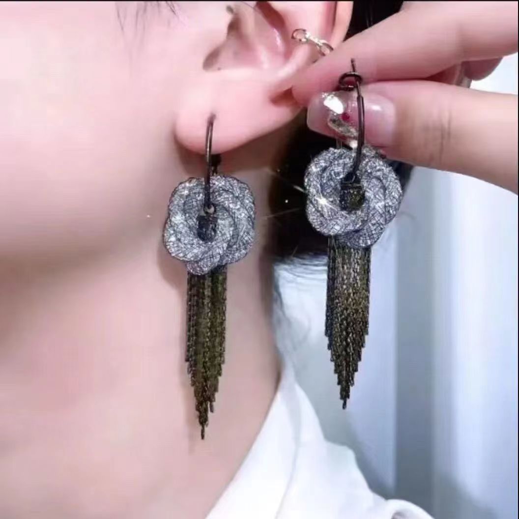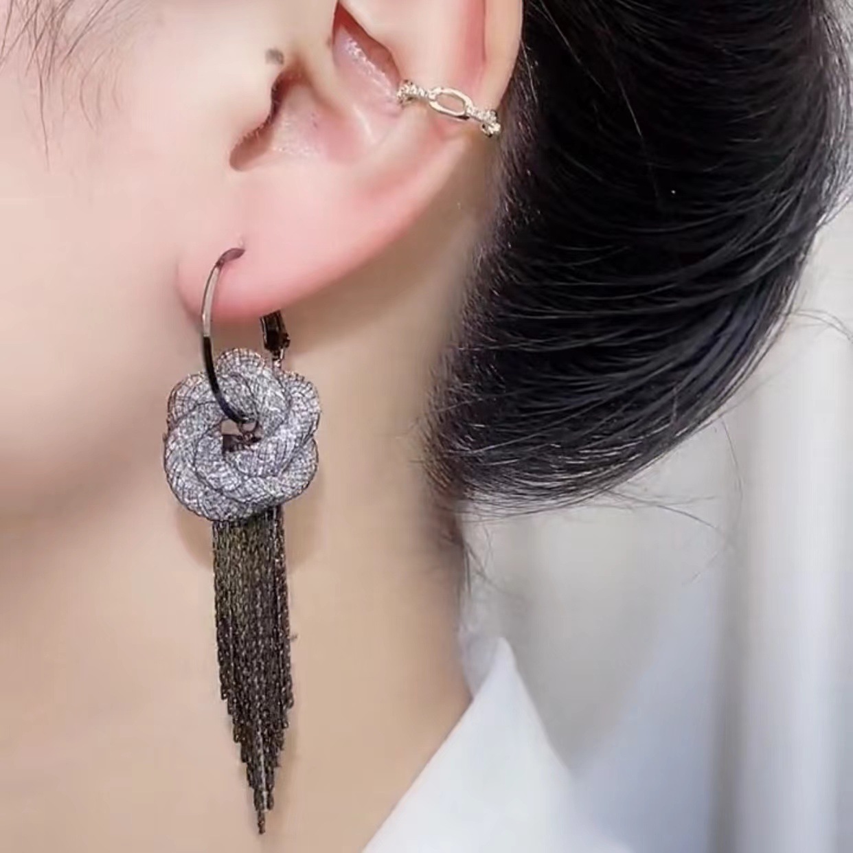 2024 New Style Net Red Rose Long Net High-end Earrings Women's High-end Sense Earrings Elegant Tassel Earrings